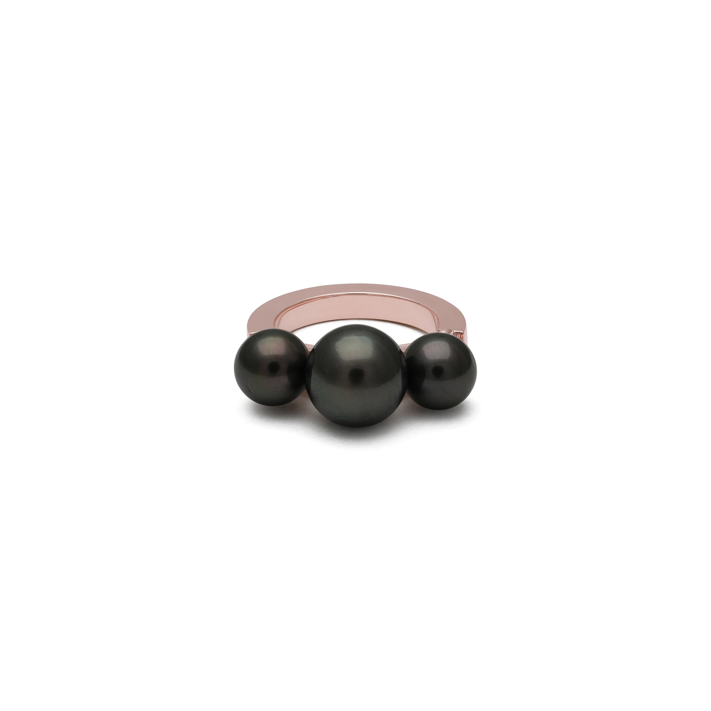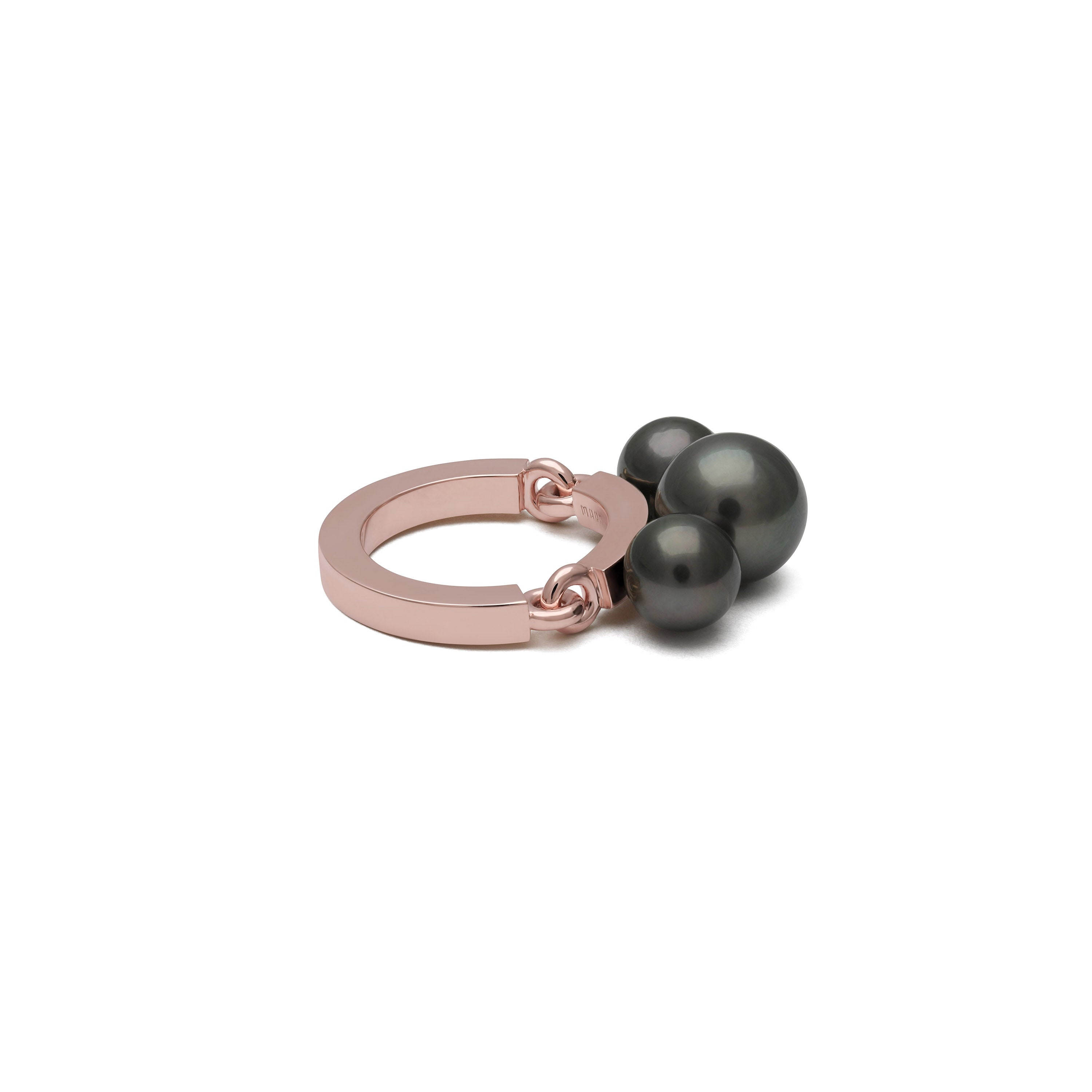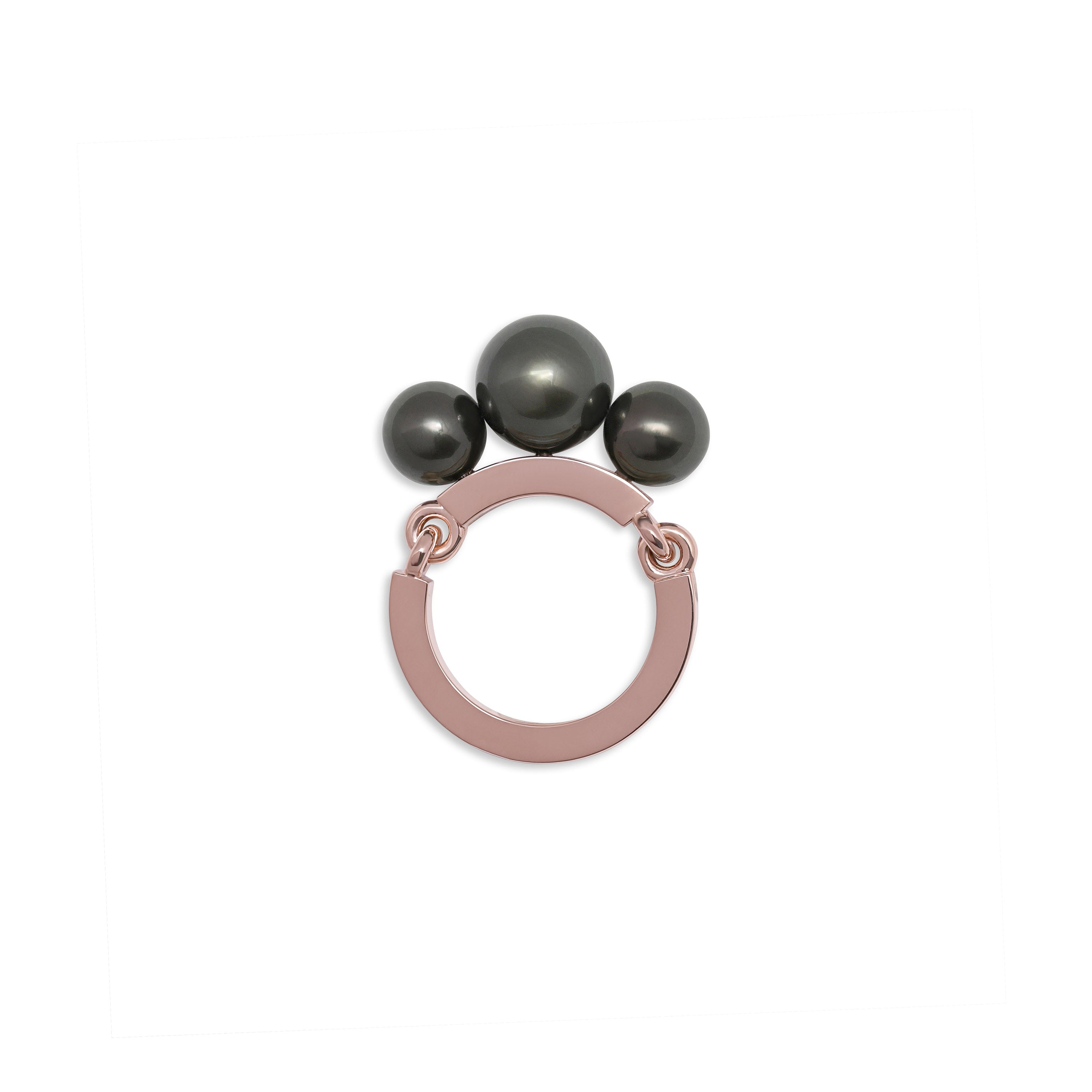 Harnessing the movement of the planets into solid 18k rose gold and crowned with three of the finest black Tahitian pearls, this is a foundational piece for every collector. Whether worn on its own or stacked next to other MAOR rings, the Aphelion Pearl ring is the ultimate symbol of empowerment.