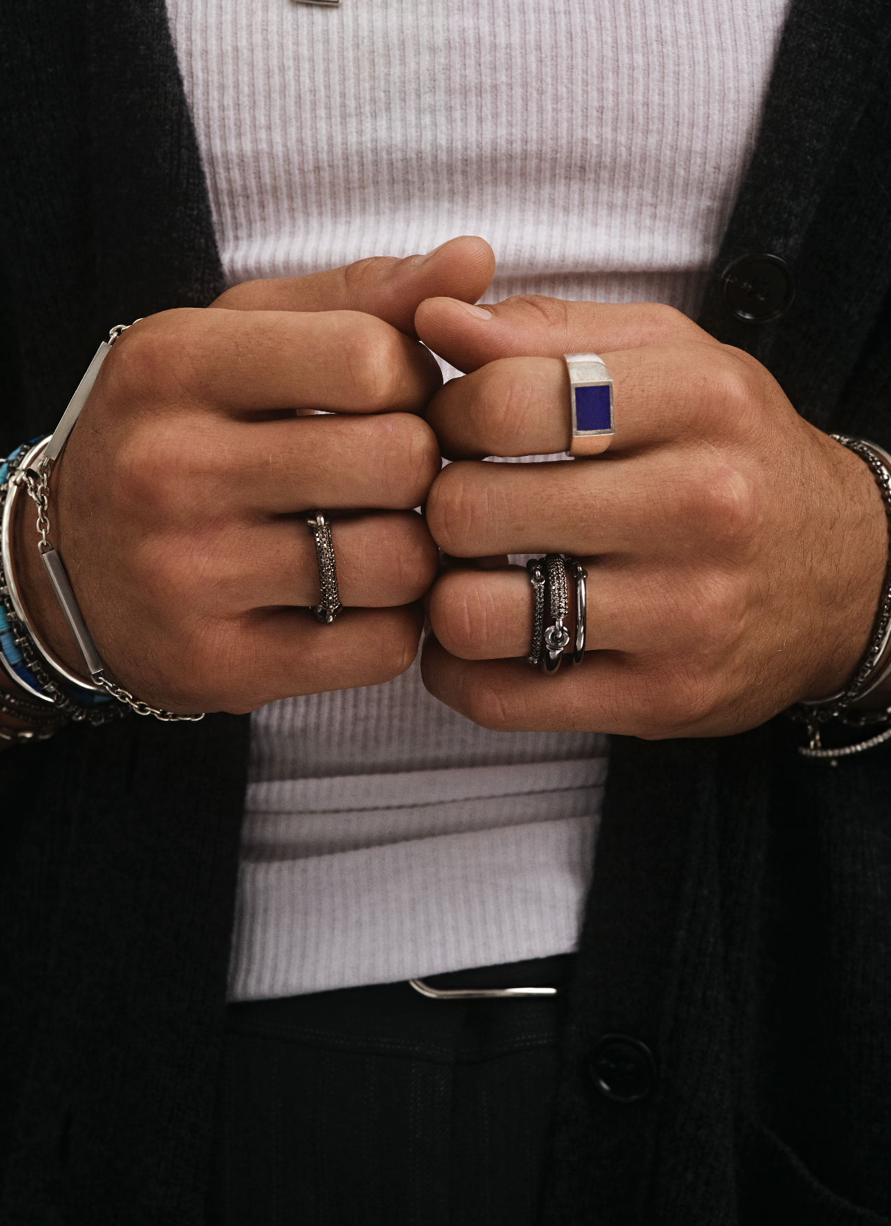 Harnessing the movement of the planets into solid 18k white gold with black rhodium, the two-part Aquila ring is a foundational piece for every collector. Whether worn on its own or elevating a stack, this ring is designed to live on the hand as a permanently empowering force for its owner.