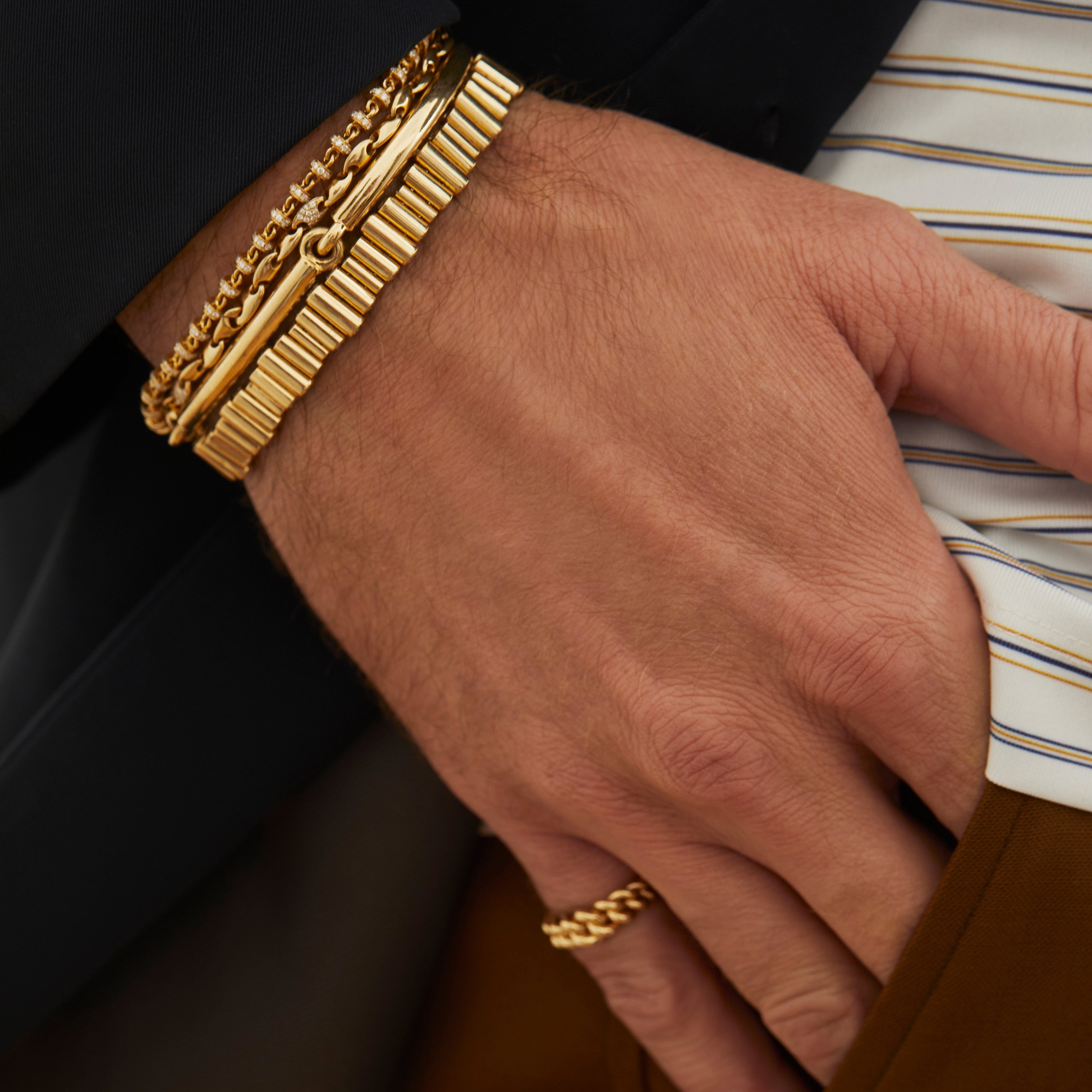 Capsule Bracelet | Mixed Scale | Pave Edge | Yellow Gold