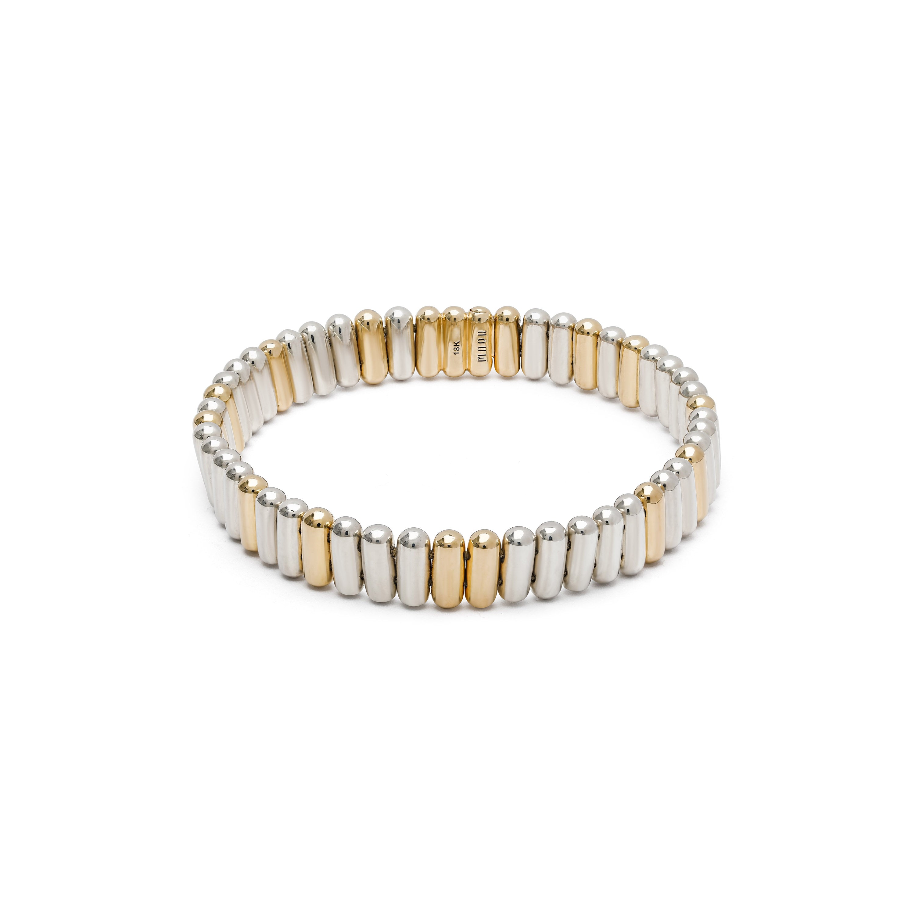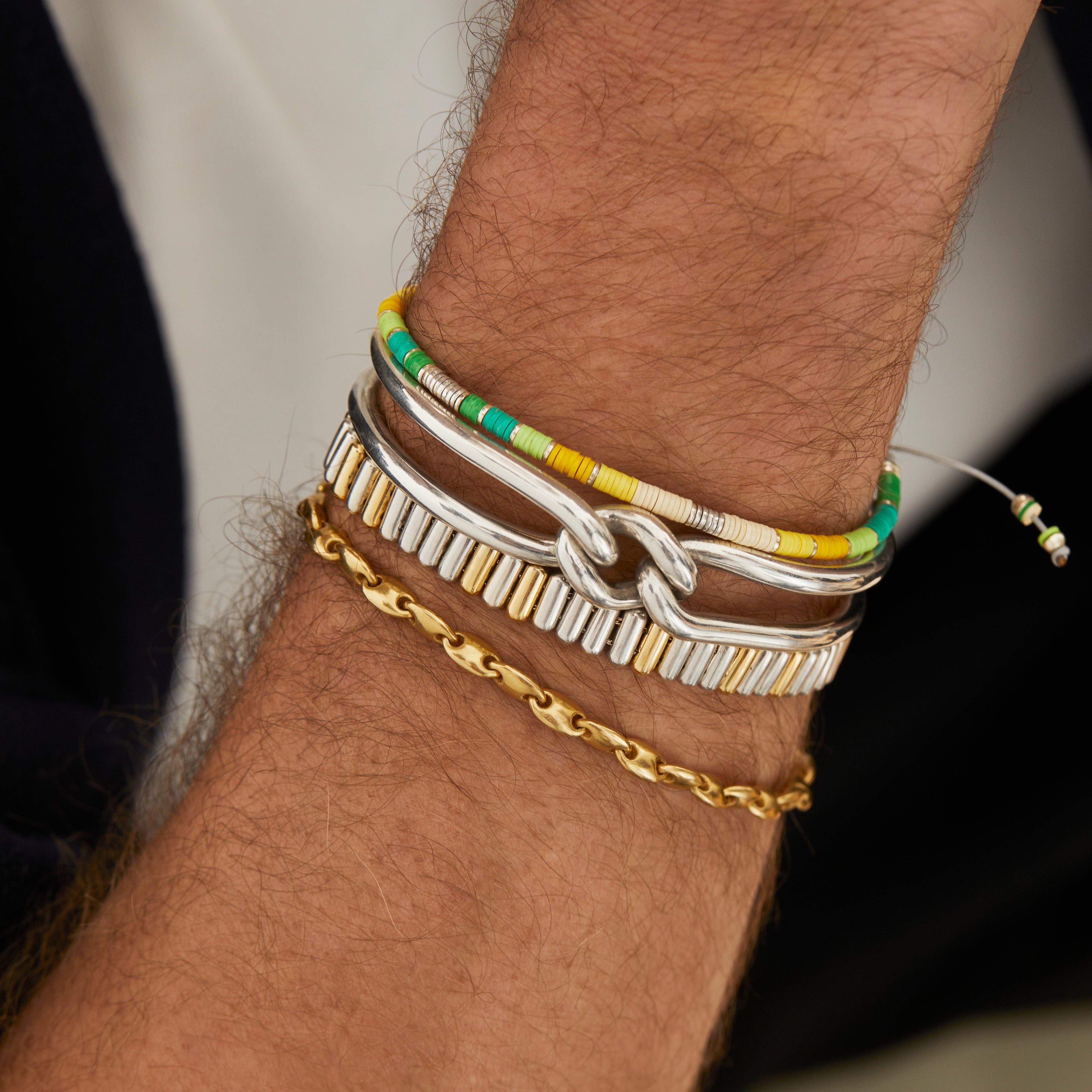 Expertly crafted and designed, the Capsule Large Bracelet is a stunning blend of solid 925 sterling silver and 18K yellow gold. With its unique mix of metals, this bracelet exudes elegance and sophistication. Elevate any outfit with this versatile accessory that combines quality and style effortlessly.