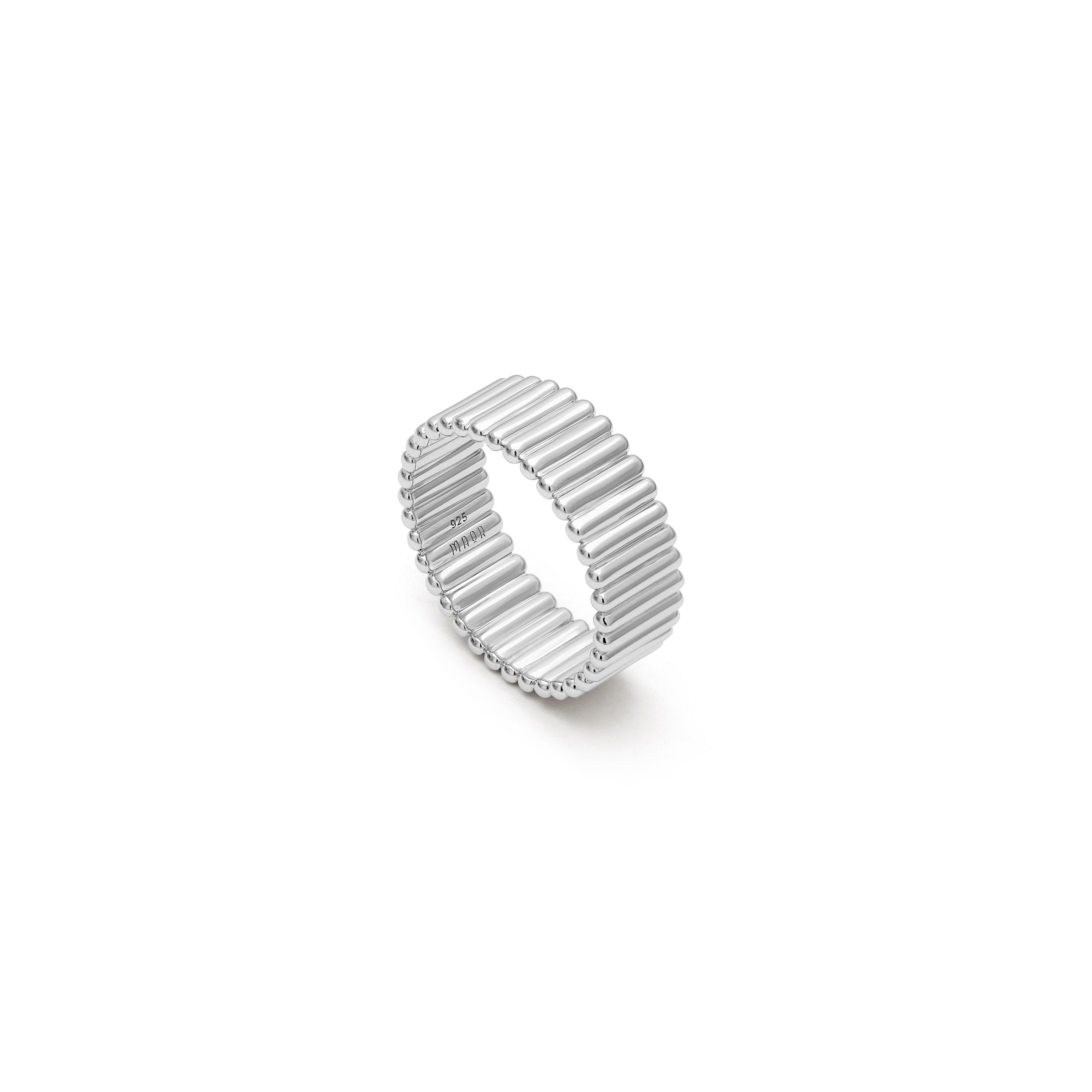 With a unique texture of solid 925 sterling silver cylinders, the Capsule ring is a true modern classic. Wear this piece as a stunning solo statement or in a stack of MAOR rings.