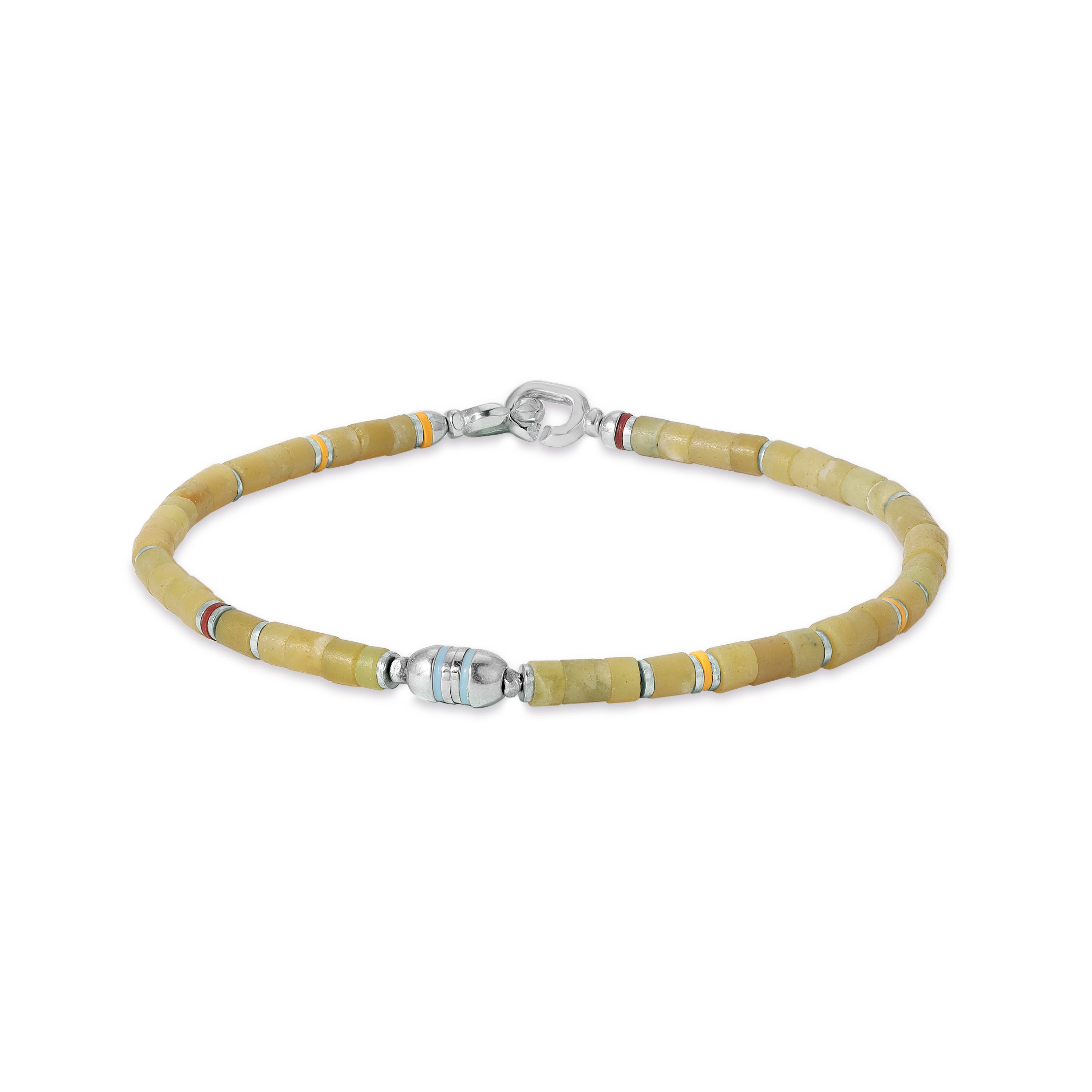 The Cherish Bracelet is expertly crafted with genuine, high-quality Beige Afghan Jade and accented with a beautiful sterling silver finish. Elevate your style and add a touch of elegance with this stunning bracelet. Made to last a lifetime, it's the perfect addition to any jewelry collection.