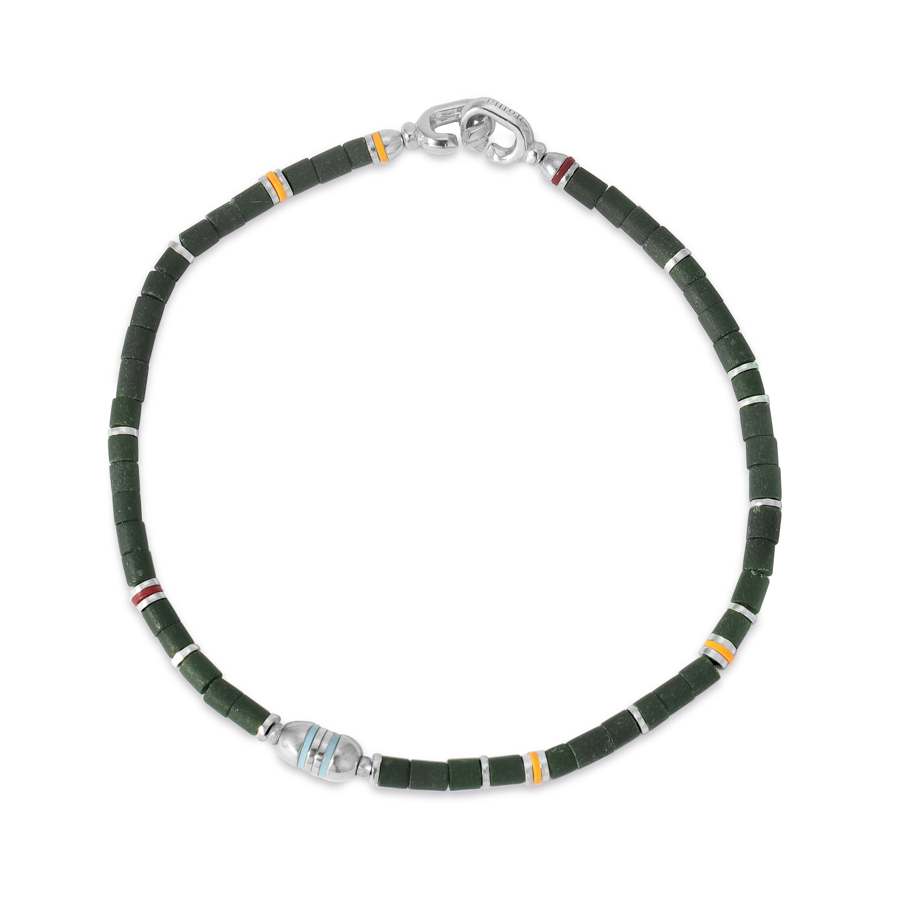 Crafted with sterling silver, our Cherish Bracelet is the perfect combination of elegance and durability. The dark green Afghan Jade adds a touch of natural beauty to your look. Experience the timeless beauty of our Cherish Bracelet that will last a lifetime.