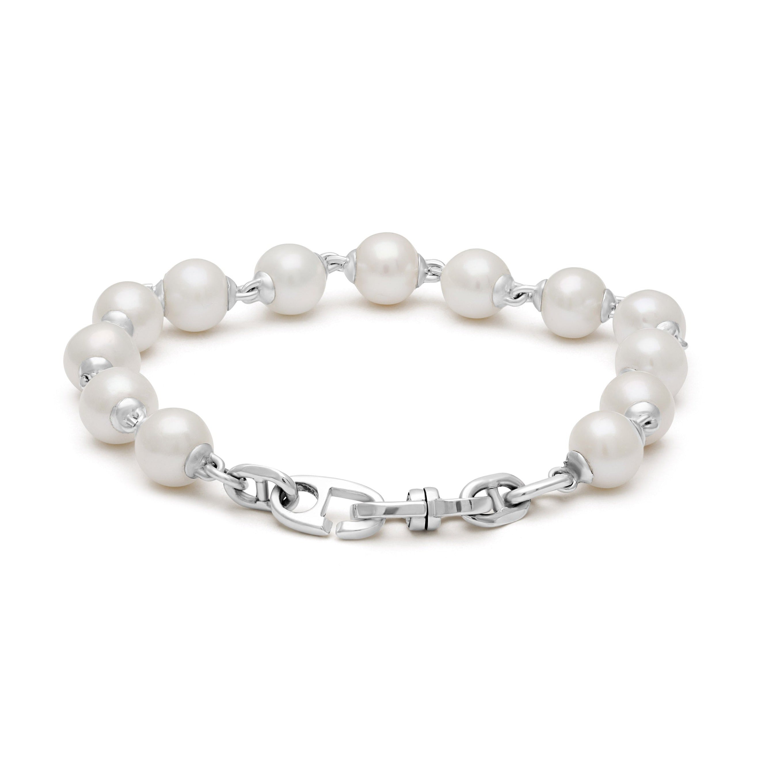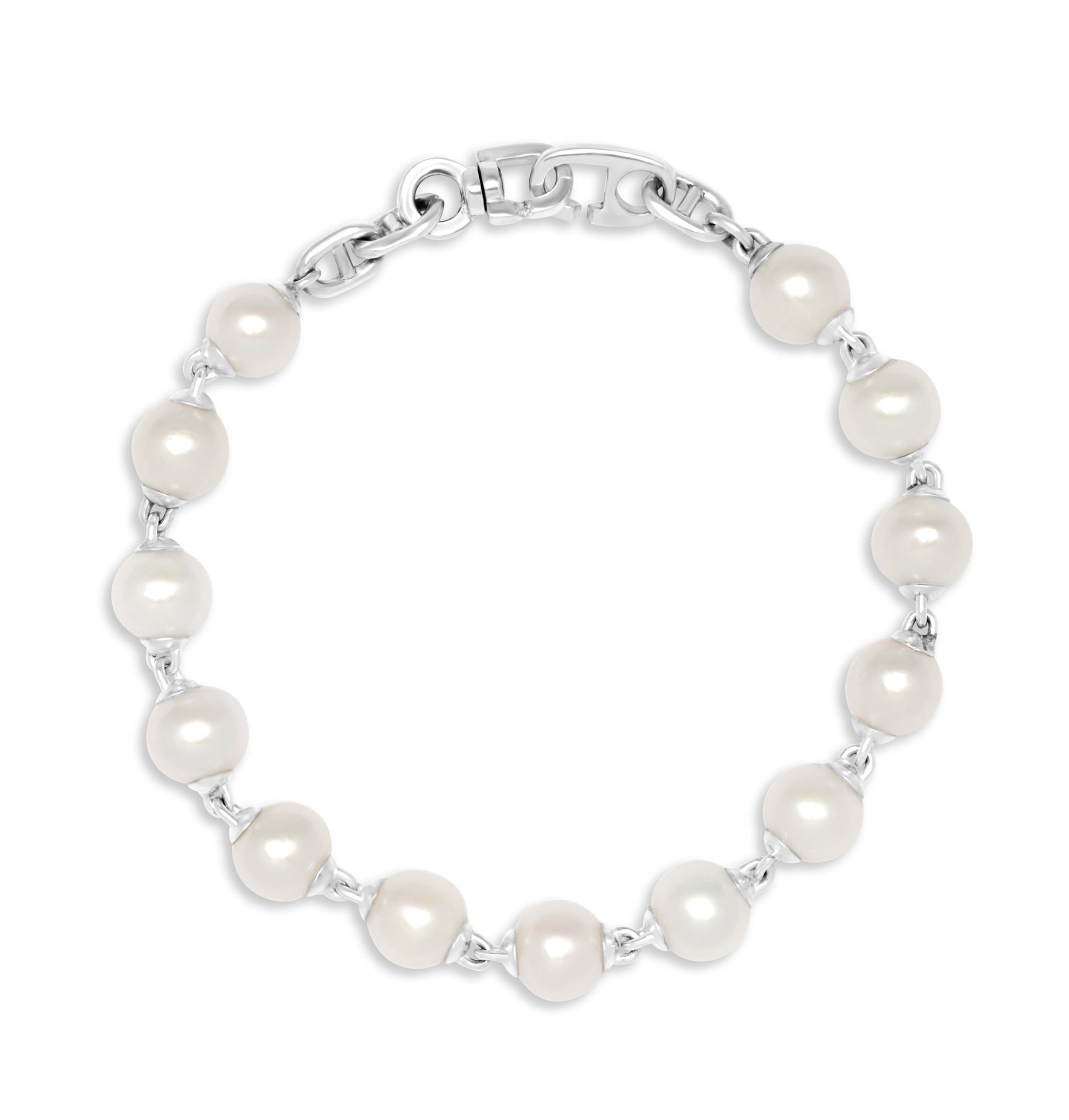 With unique patterns combining 925 sterling silver and fresh water white pearls, the Consi bracelet is a true modern classic. Wear this piece as a stunning solo statement or in a stack of MAOR bracelets.