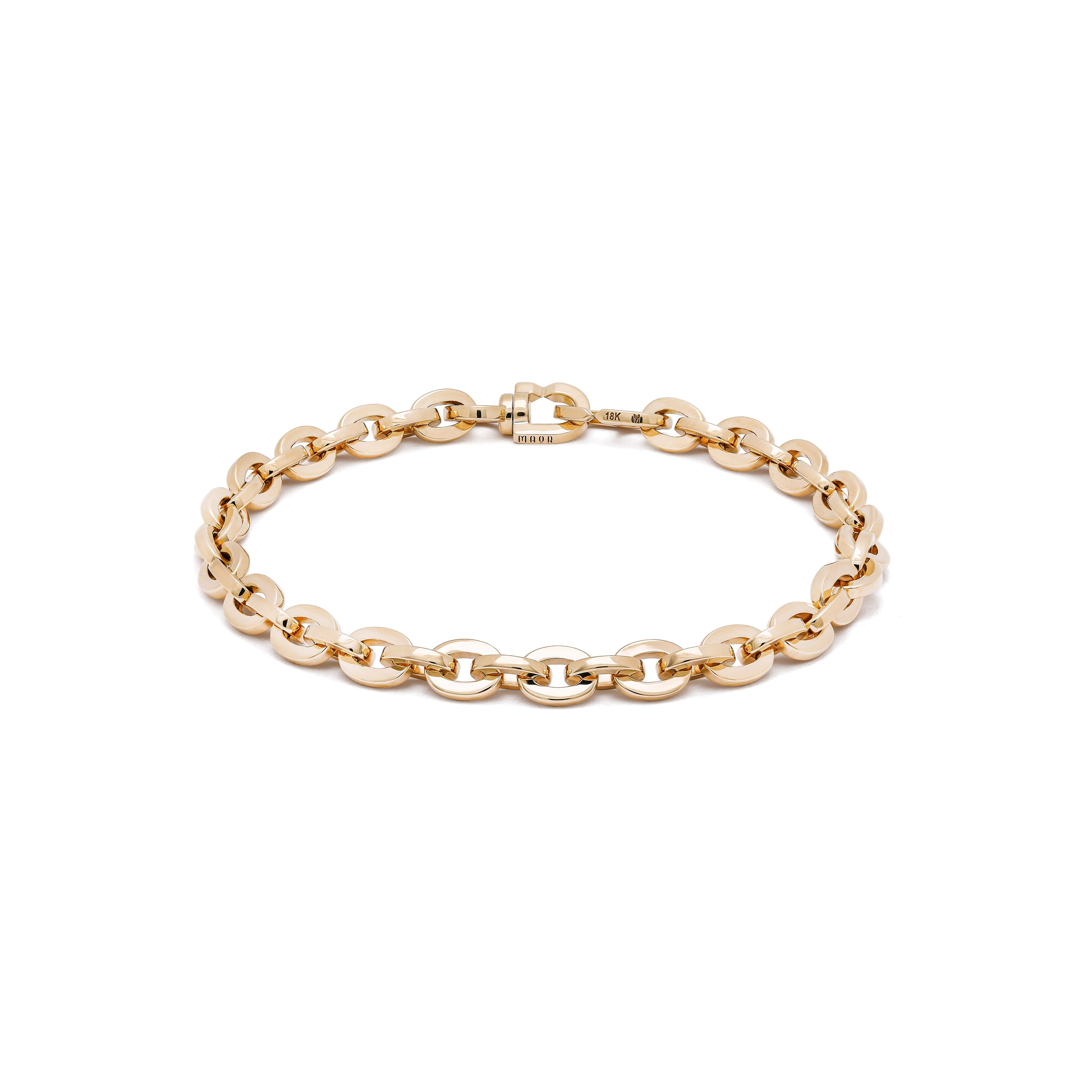 Embracing the design of the interlocking links, the solid 18k yellow gold Cuadie is a beautiful statement piece. Wear it solo or stacked with a MAOR bangle and beaded bracelet.