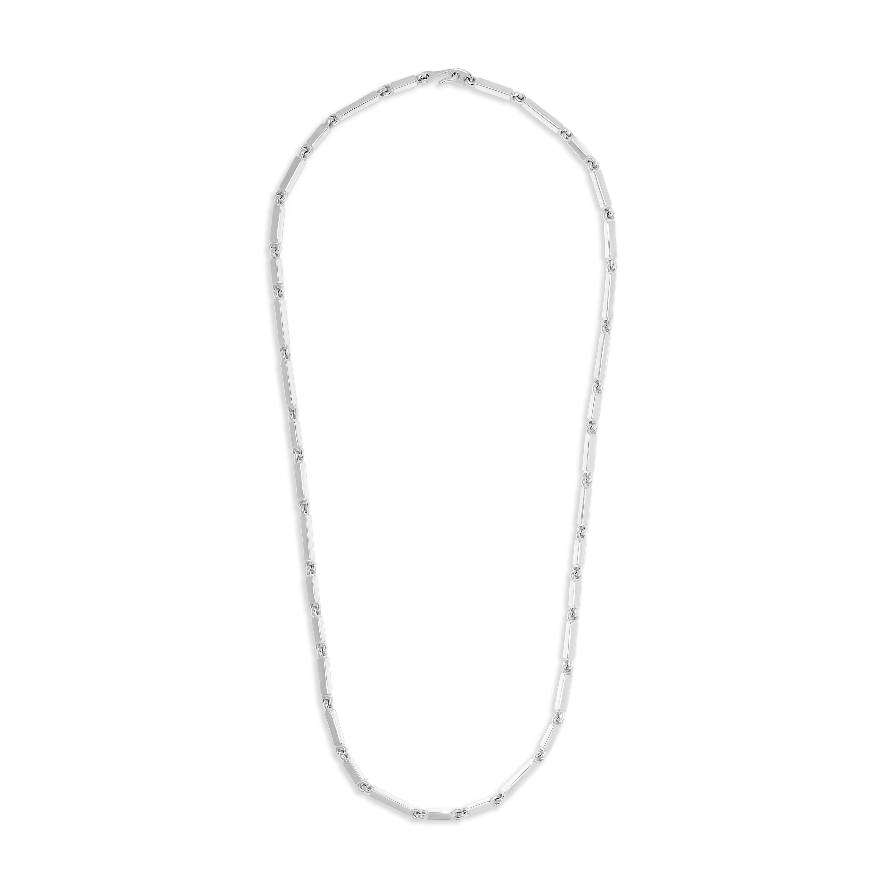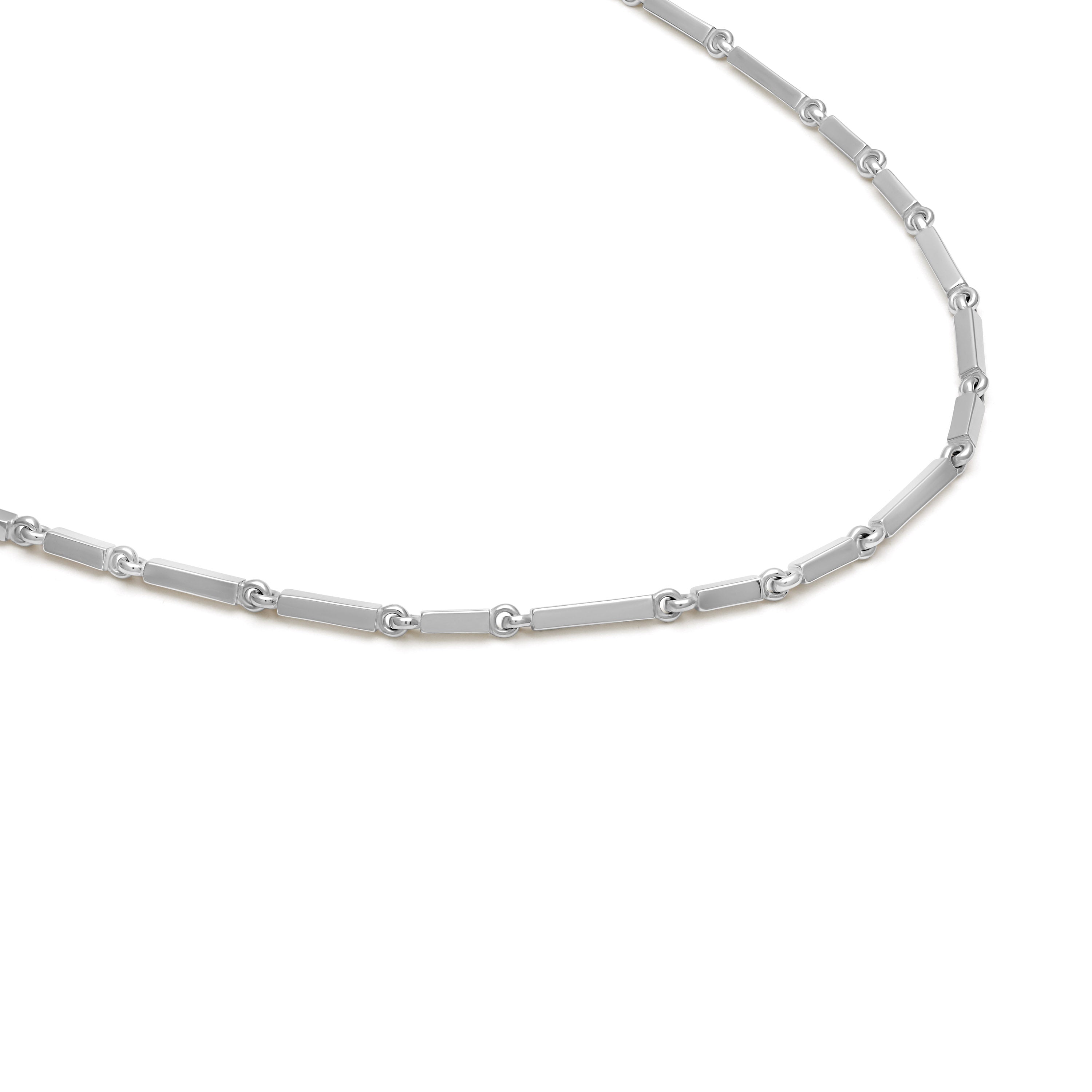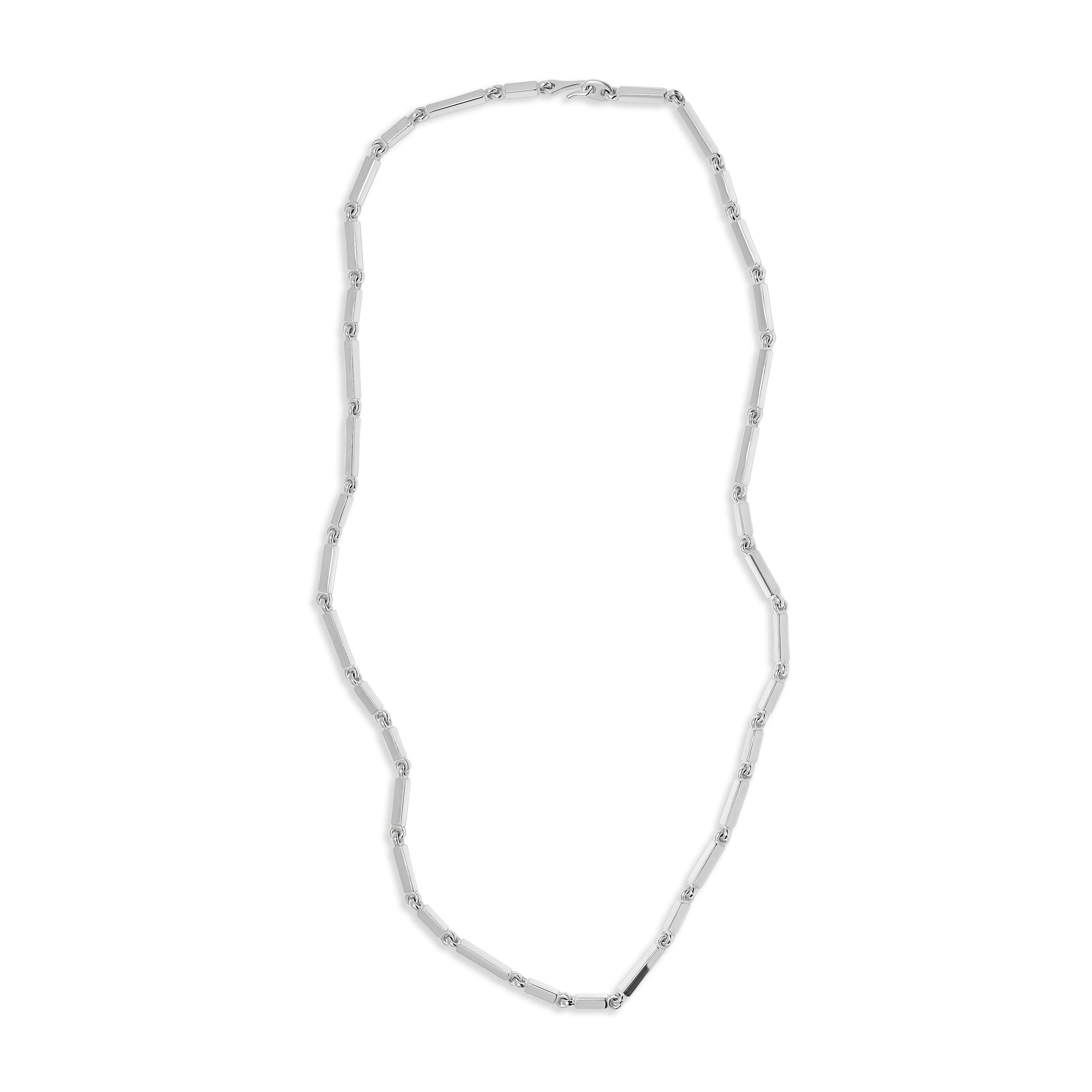 Embracing the design of the interlocking square bars of varying sizes, the 925 sterling silver Cuadrangular necklace is a unique statement piece. Wear it solo or stacked with other MAOR pieces.