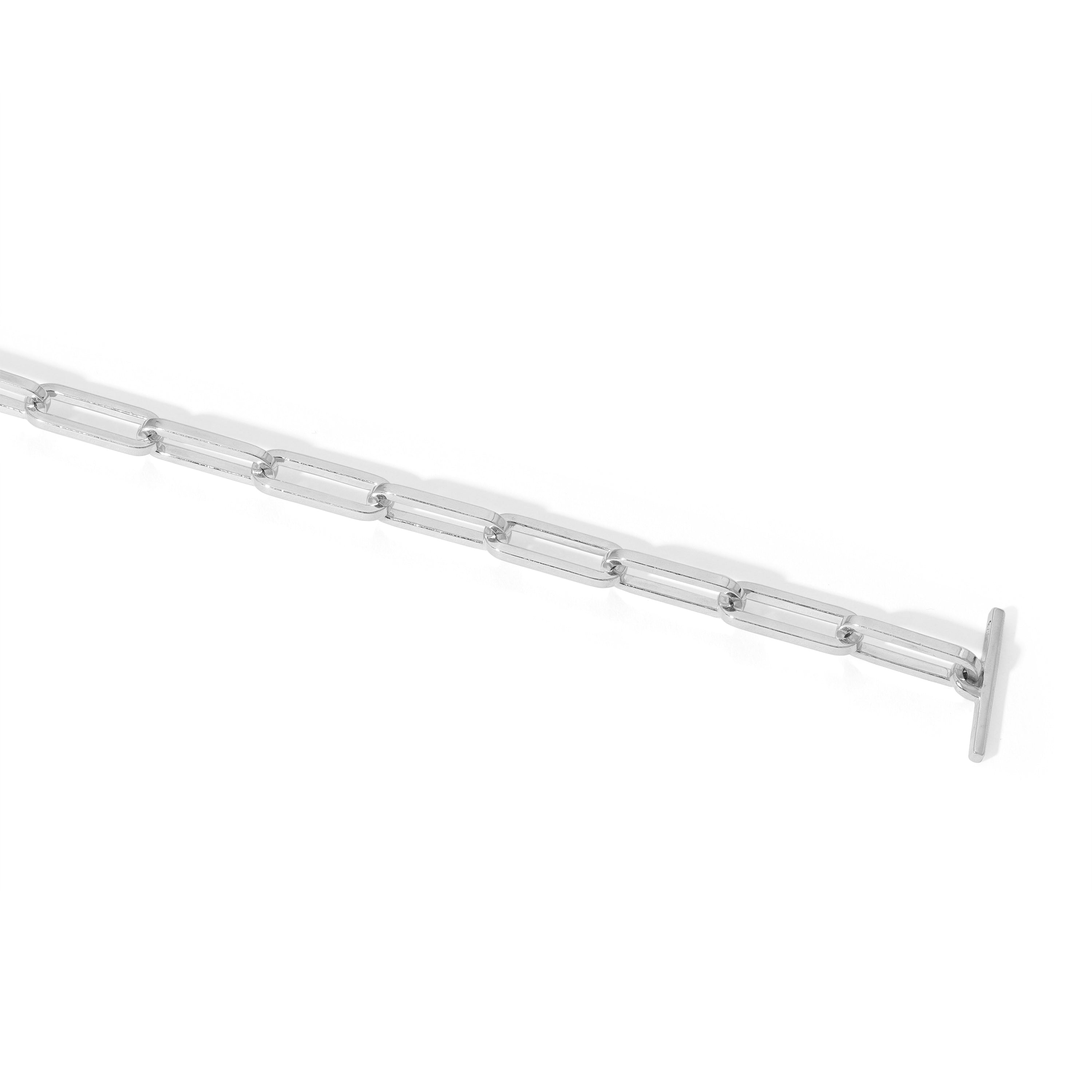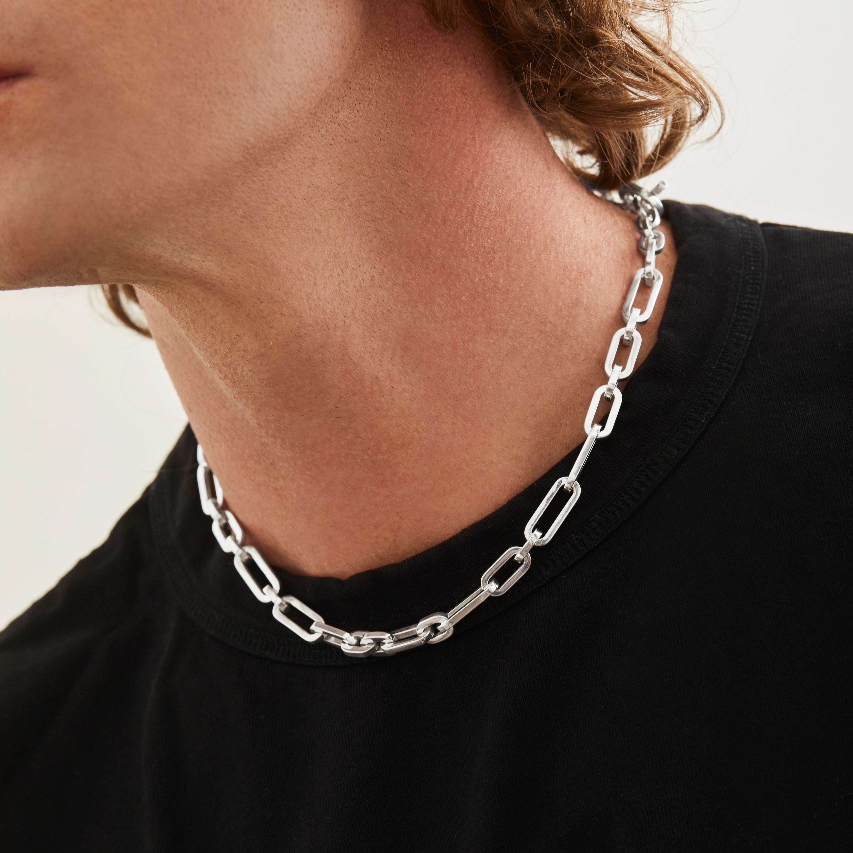 The solid 925 sterling silver the Cuadro link necklace is substantial piece for the collector. This makes a strong statement and can be worn on its own or elevating a stack of necklaces. We suggest wearing as a short necklace.