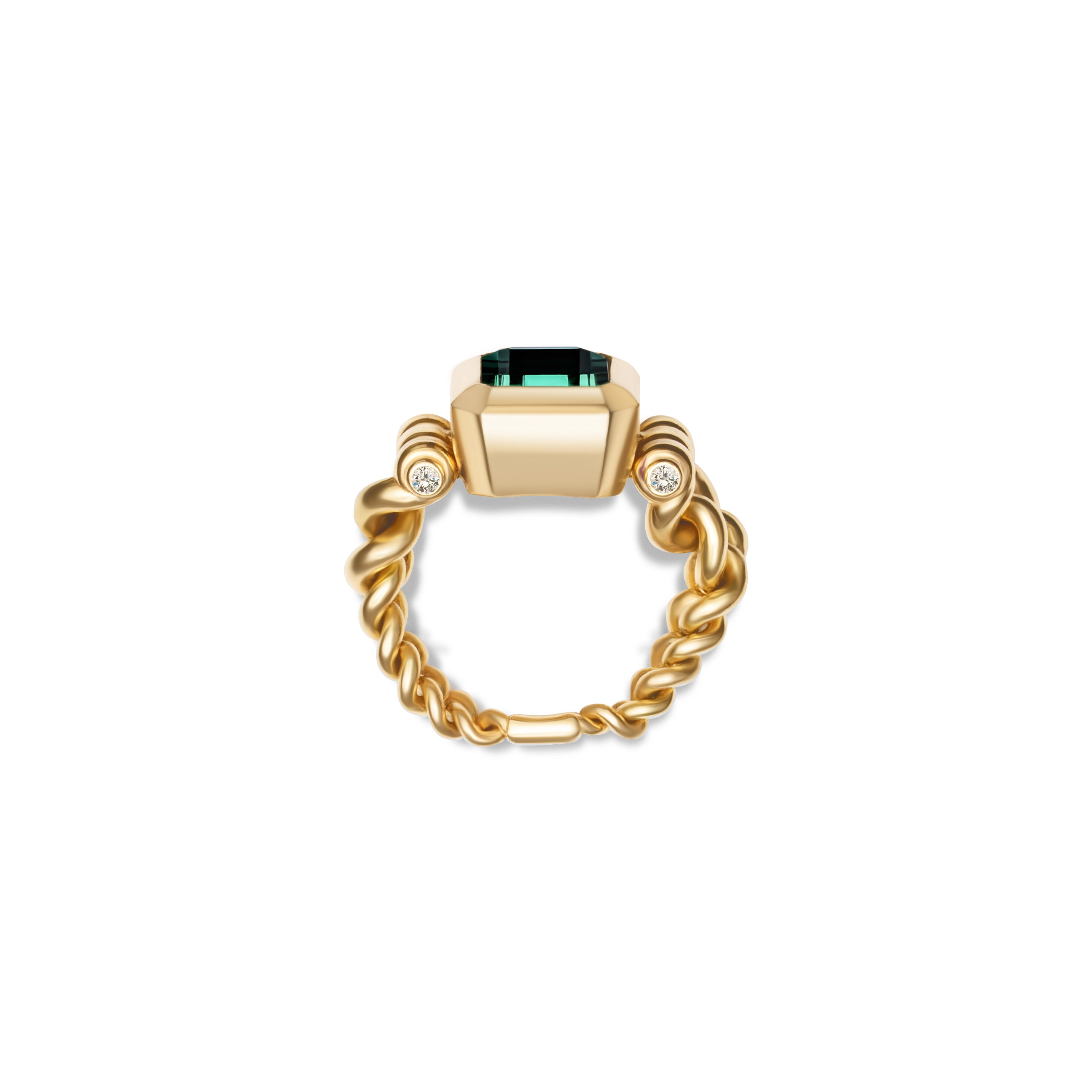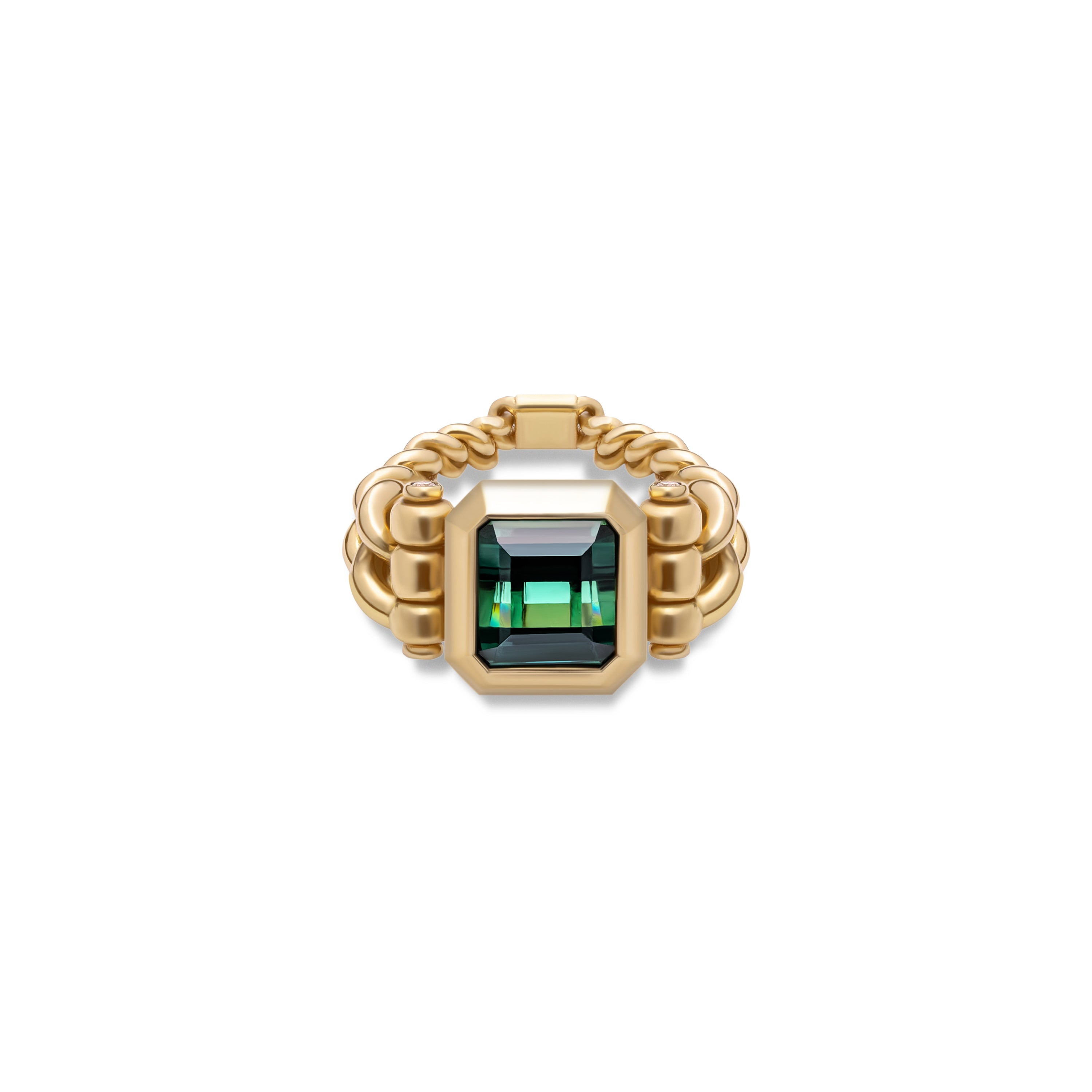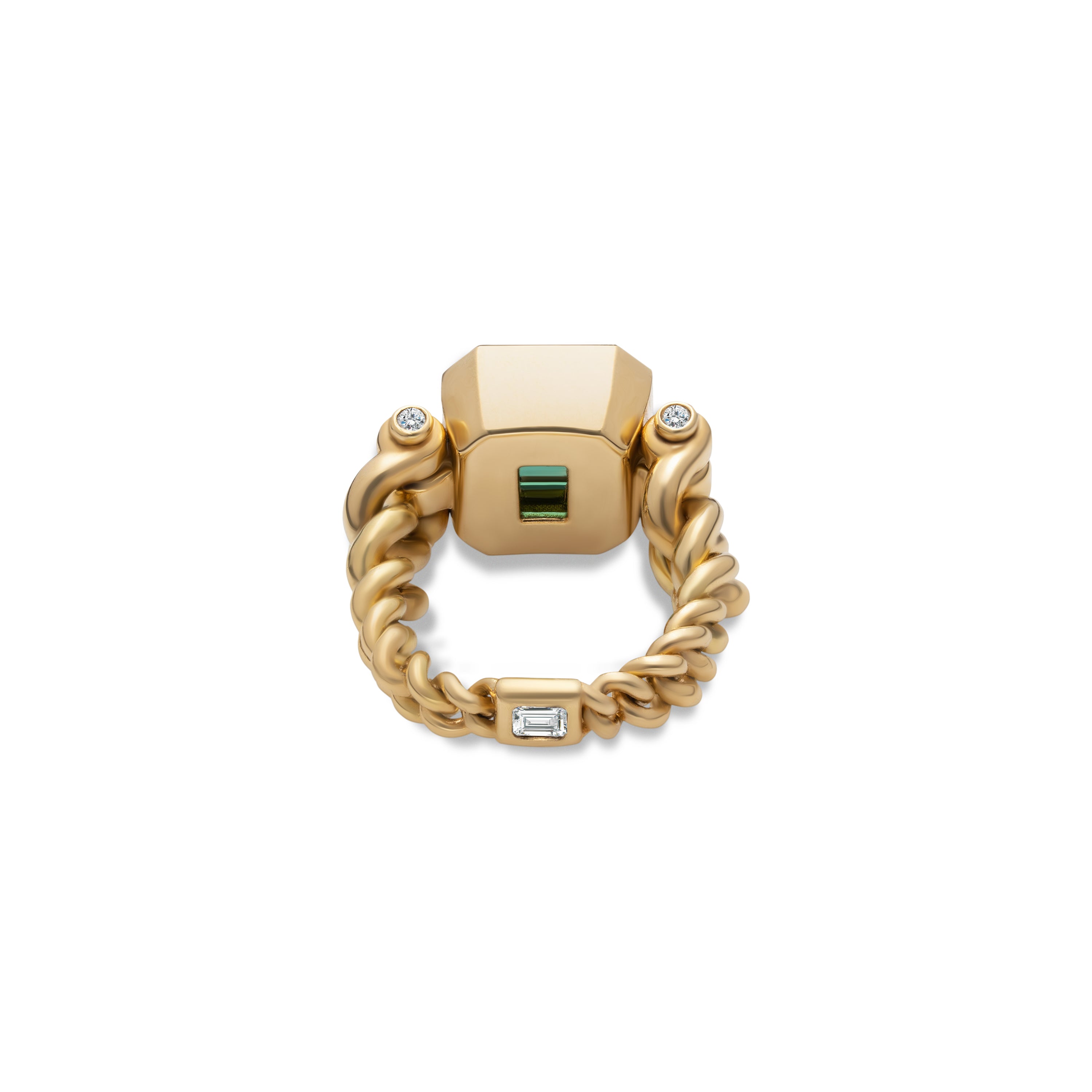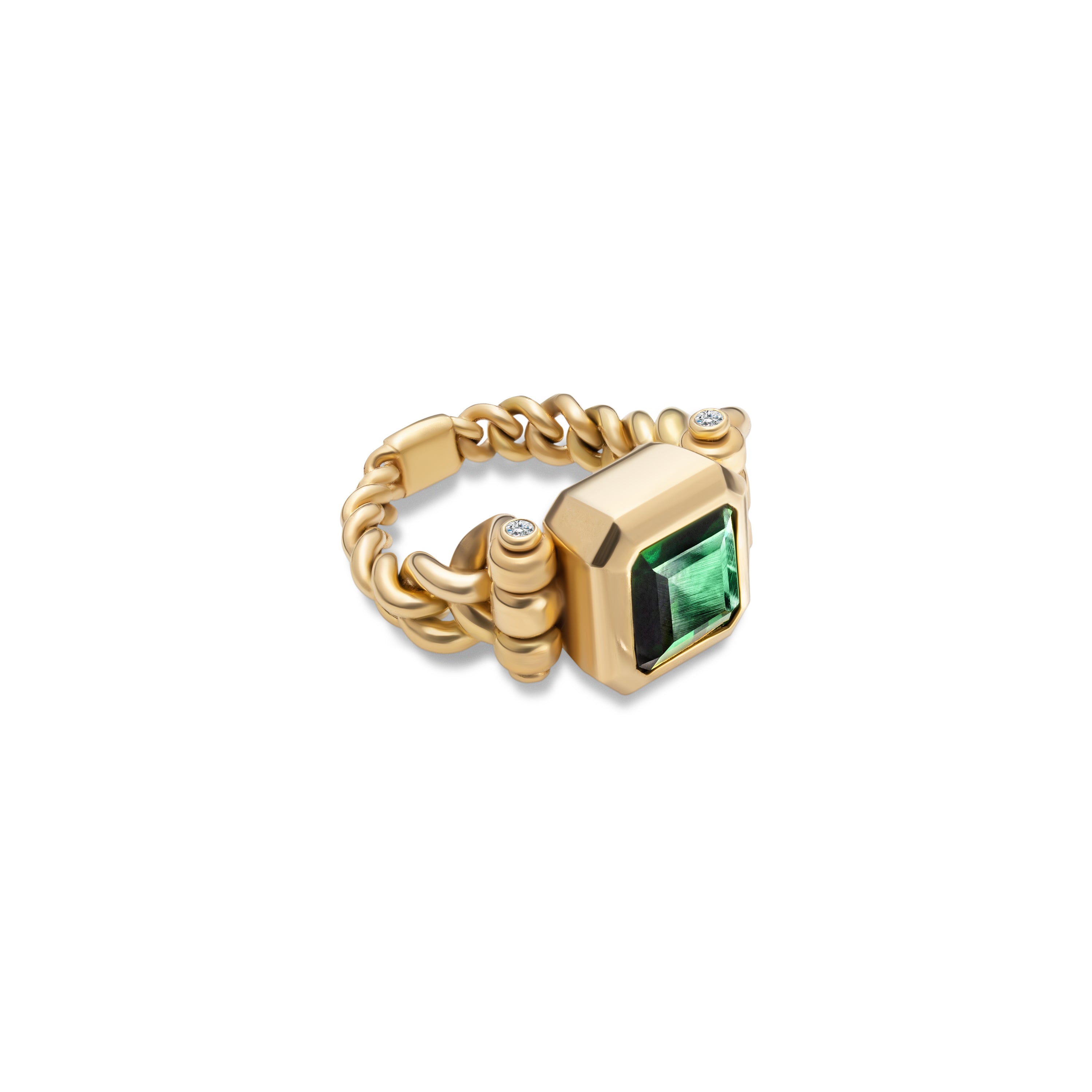 Curb Chain Ring | Green Tourmaline | Yellow Gold | Diamond Detail