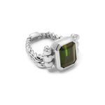 Curb Chain Ring | Small Scale | Diamond | Green Tourmaline | Sterling Silver