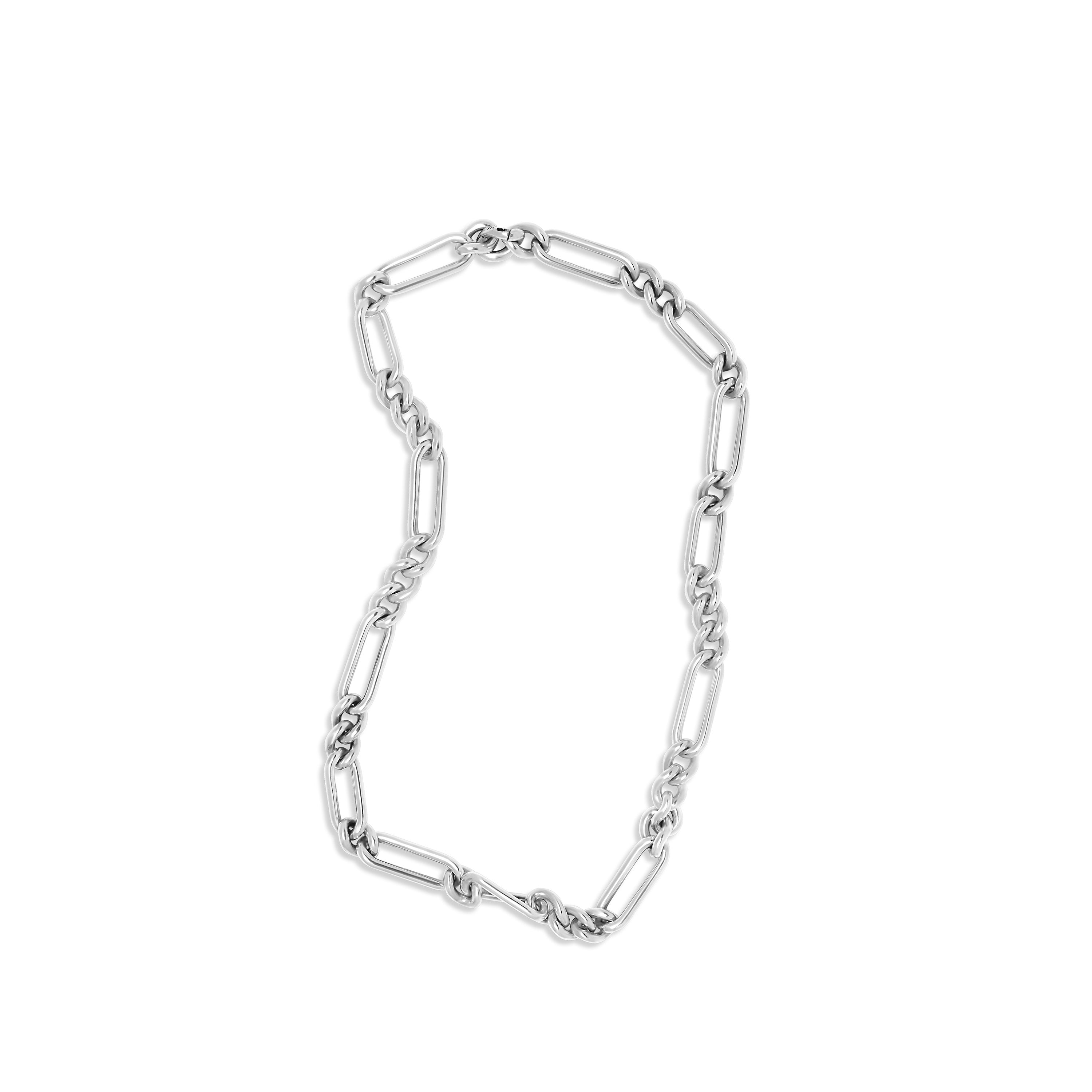 Where the city's edge meets high society, the solid 925 sterling silver Unity Link necklace is expertly designed to be worn as a bold solo statement or in a stack of complementary pieces. The hidden lock mechanism allows it to be worn in any direction.