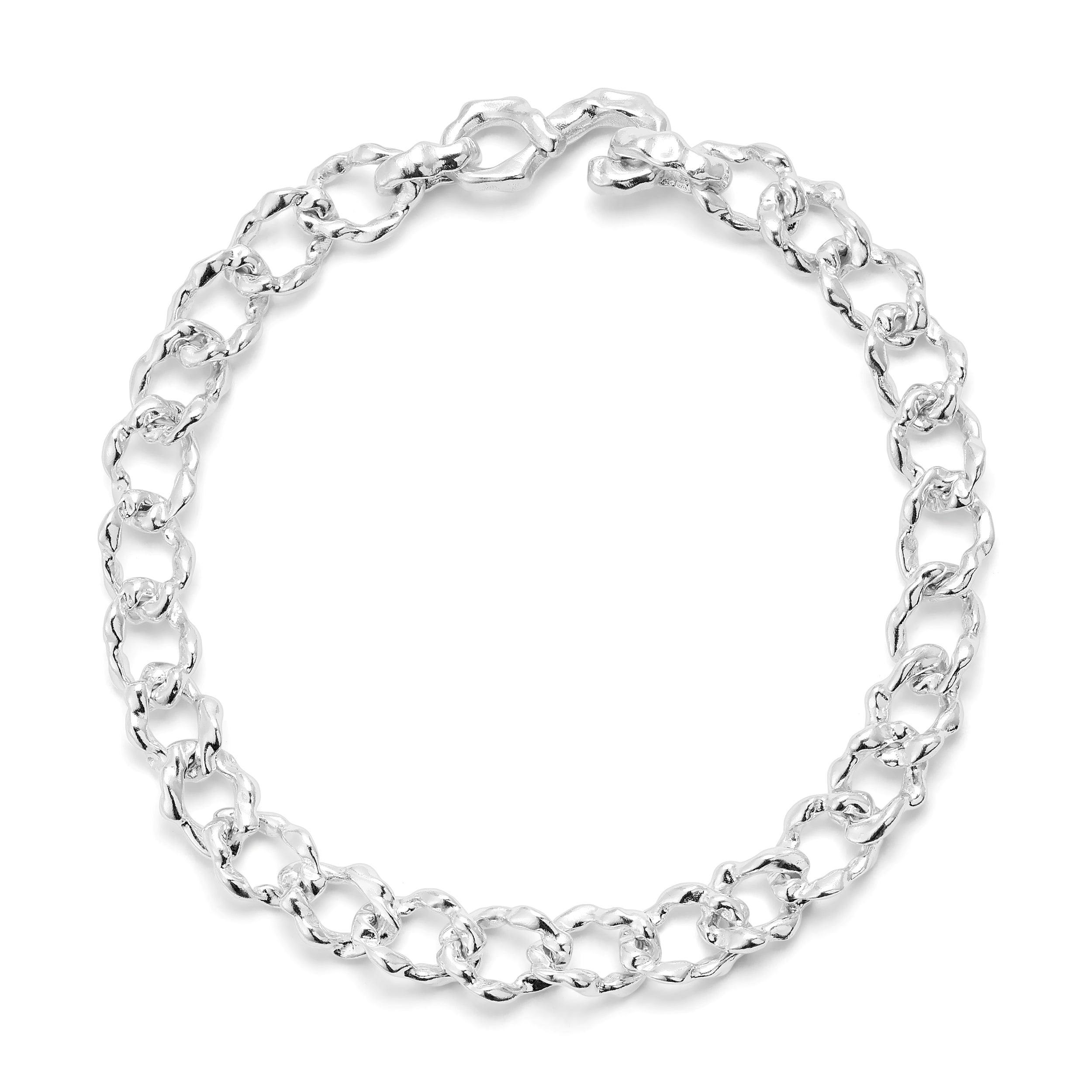 The 8mm Curba Bracelet is made with high-quality sterling silver, creating a sleek and sophisticated look. Crafted for durability and elegance, this bracelet is perfect for adding a touch of luxury to any outfit.