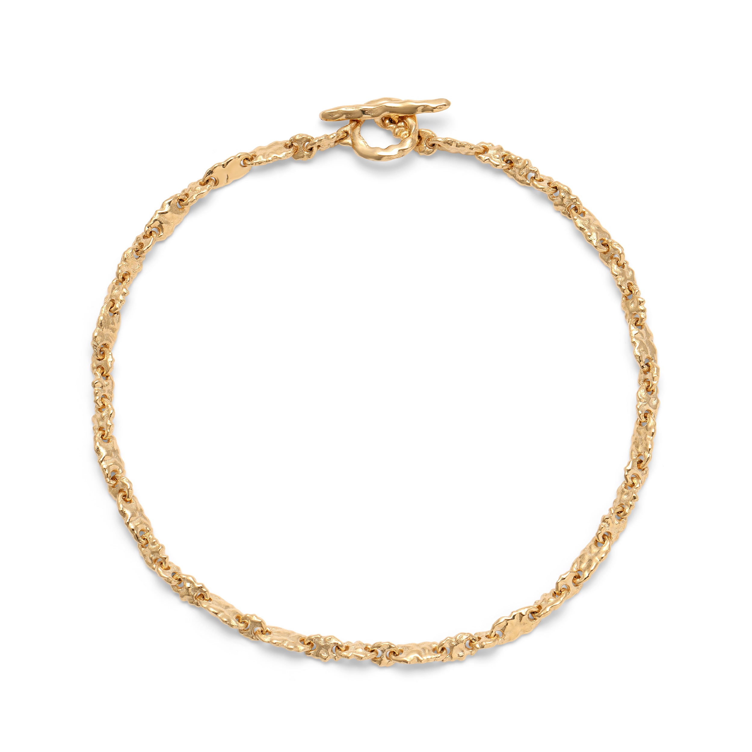 Crafted with precision and skill, the Dali Bracelet features a 3mm thickness and a toggle closure. Made with 18k yellow gold, this bracelet is a sleek and elegant addition to any jewelry collection. Elevate your style with this timeless piece.