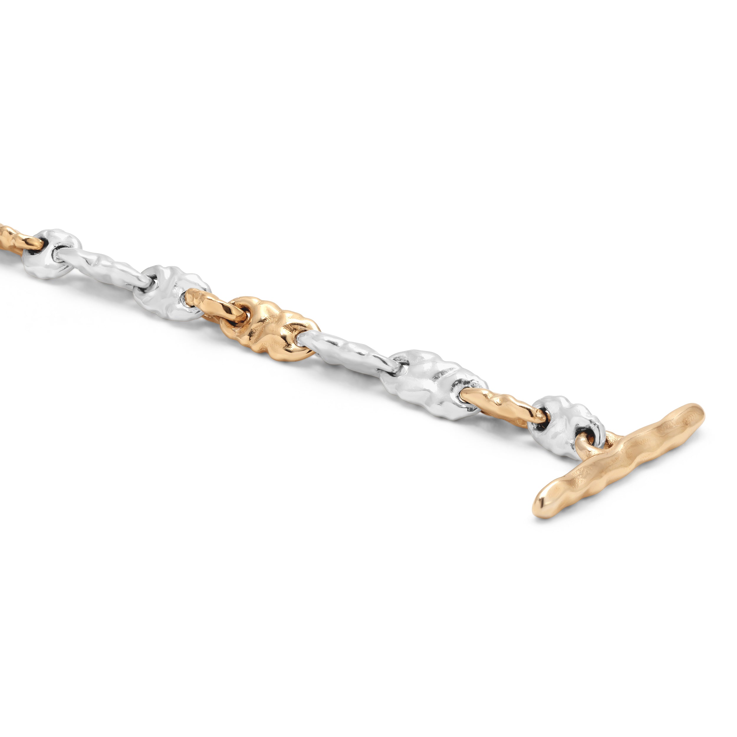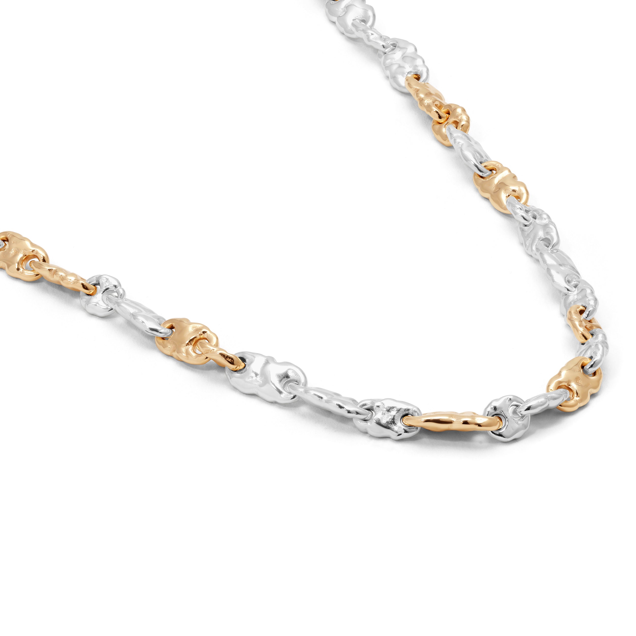Expertly crafted with a substantial 5mm thickness, the Dali Necklace features a sophisticated blend of solid 18k yellow gold and premium 925 sterling silver. This mixed metal design ensures both durability and timeless elegance. Its secure closure offers reliable wear, making it an ideal accessory to elevate any ensemble with refined style.