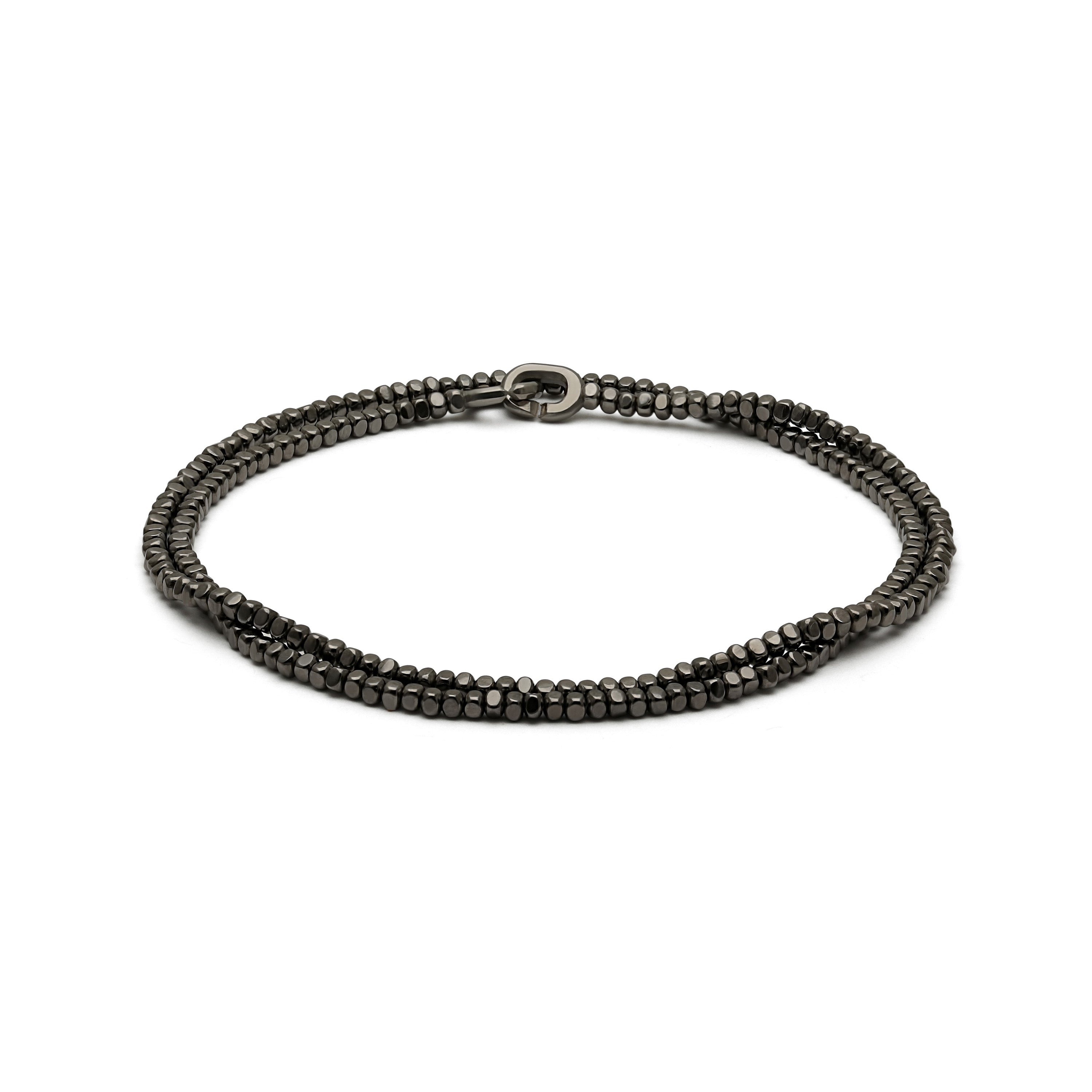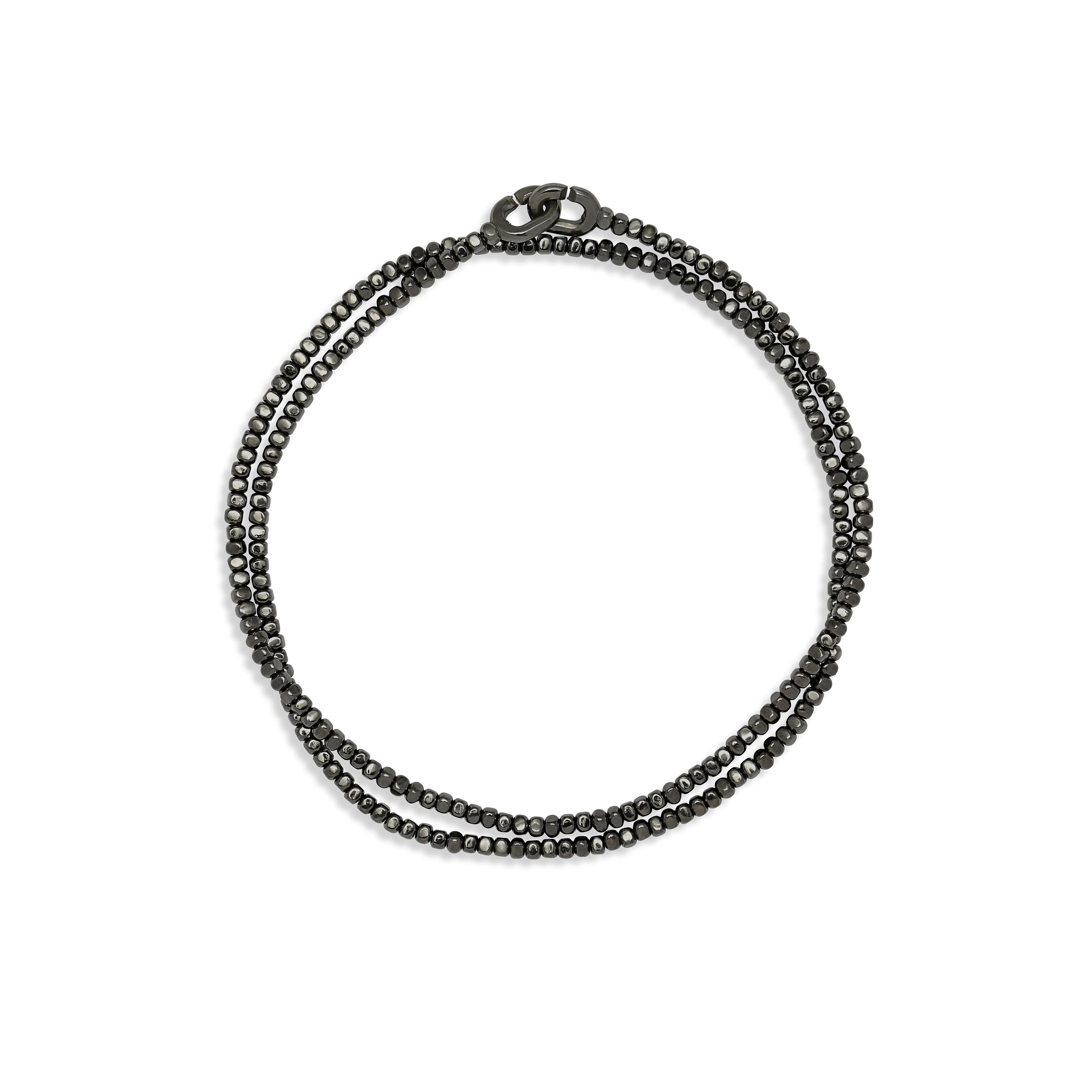 Raw and yet refined with 18k white gold with black rhodium coated corner-less beads, this is a foundational piece for every collector. Whether worn on as a two wrap, stacked next to other MAOR bracelets or worn as a choker, the Noix bracelet is a beautiful addition to your collection.