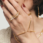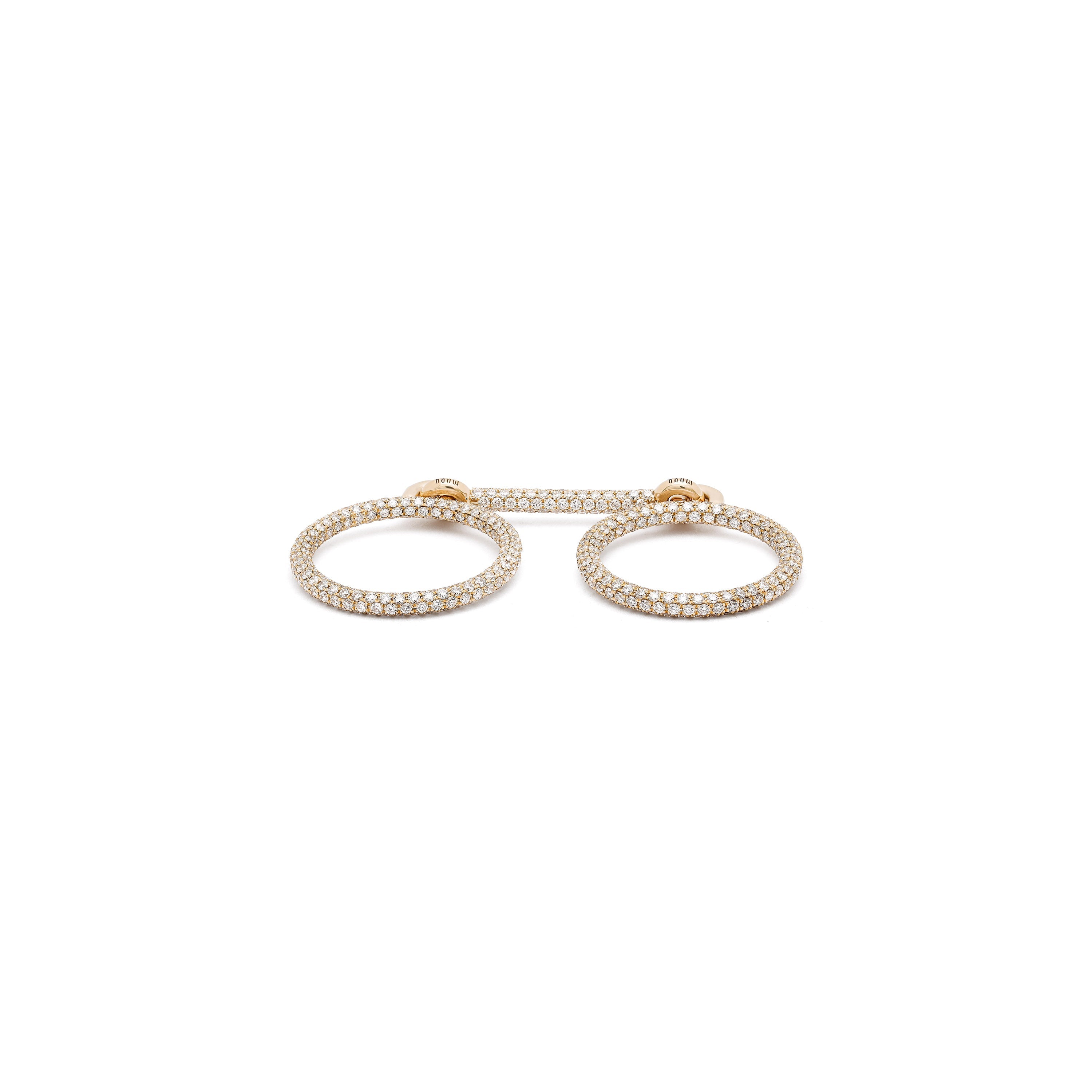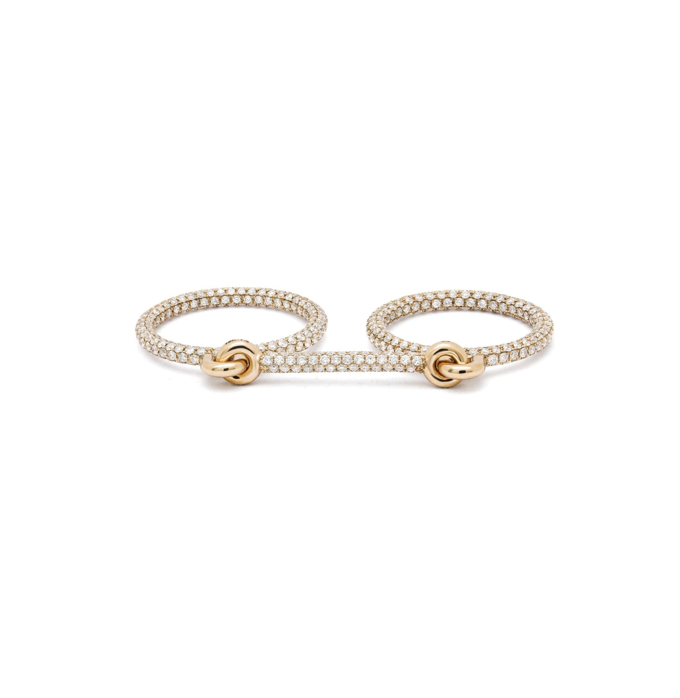 Expertly crafted with 18k yellow gold, the Double Ring is the perfect accessory for those who appreciate luxury and quality. The full pave design adds an elegant touch to any outfit, making it a versatile and timeless addition to your jewelry collection.