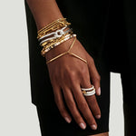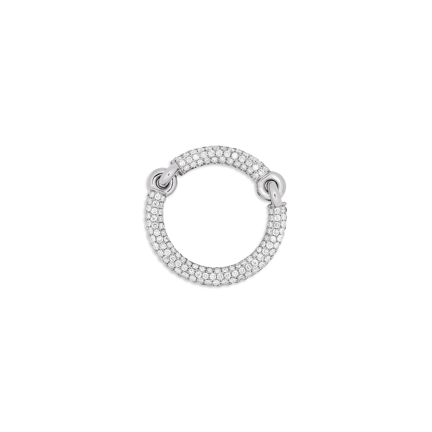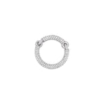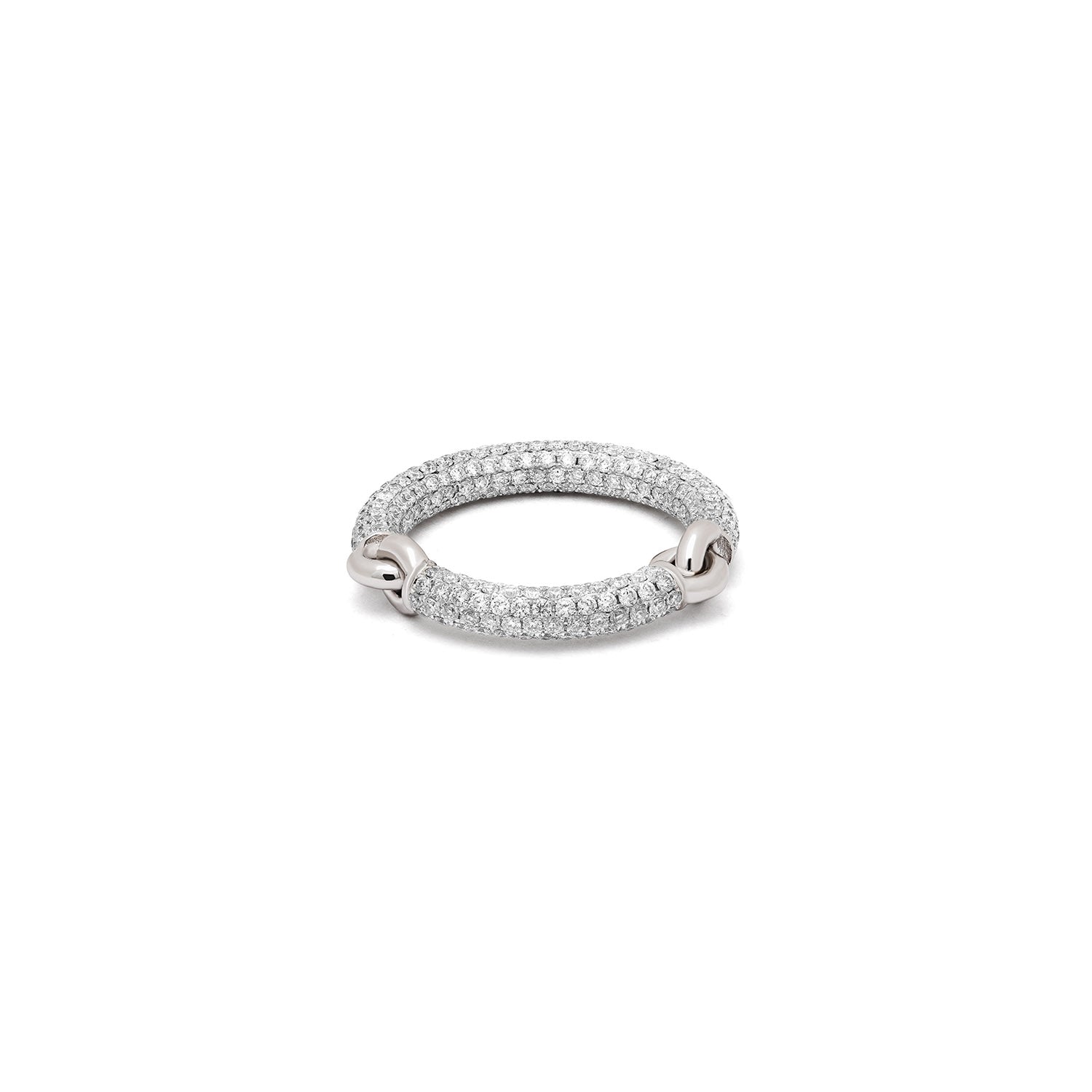 Reinventing the Solstice design with two moving parts, the 18k white gold bars are enveloped entirely with honeycomb pave white diamonds. The uniquely placed link pairs a modern twist with timeless design. Wear the Equinox as a statement piece or in a stack of complementary rings.