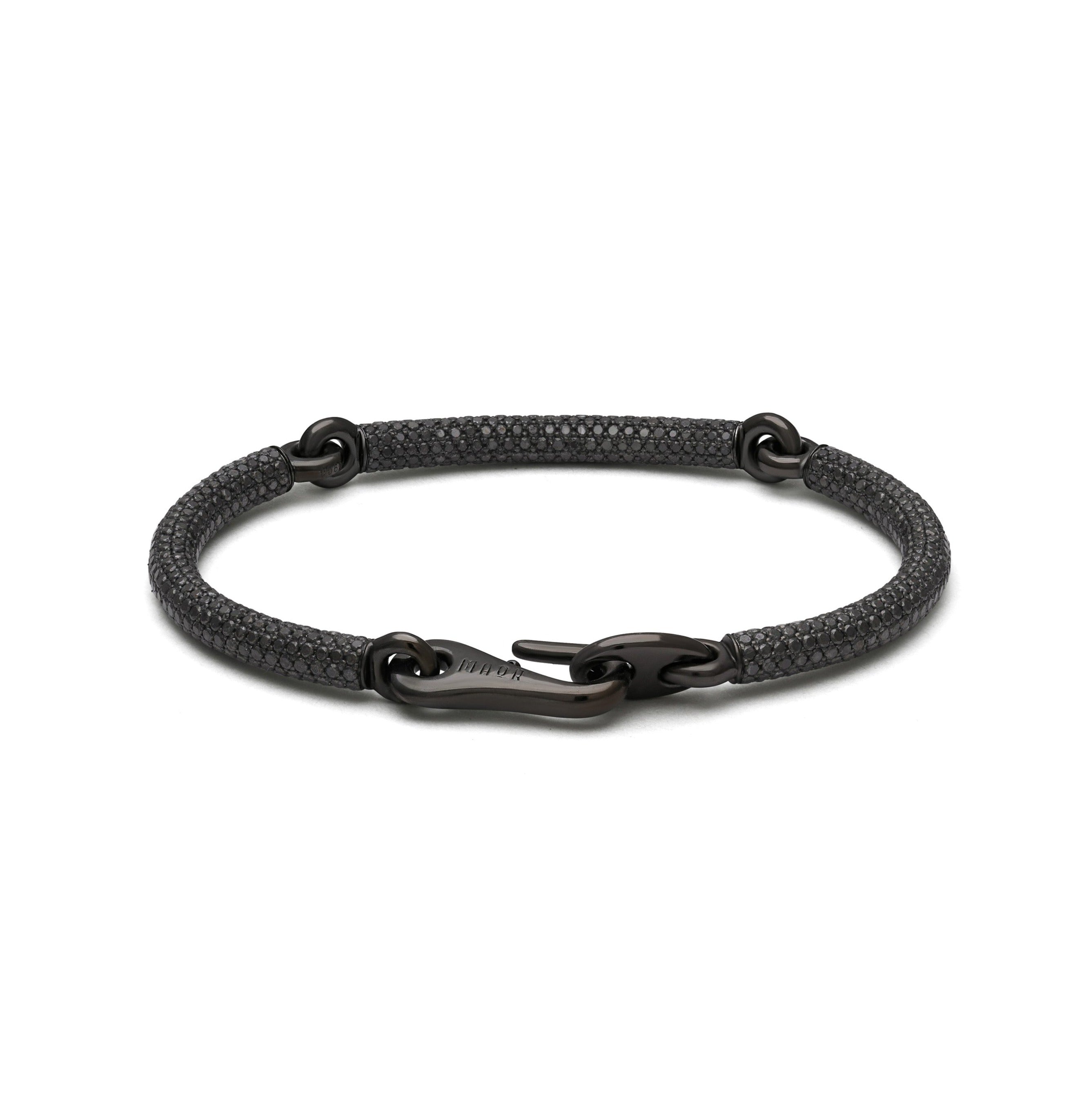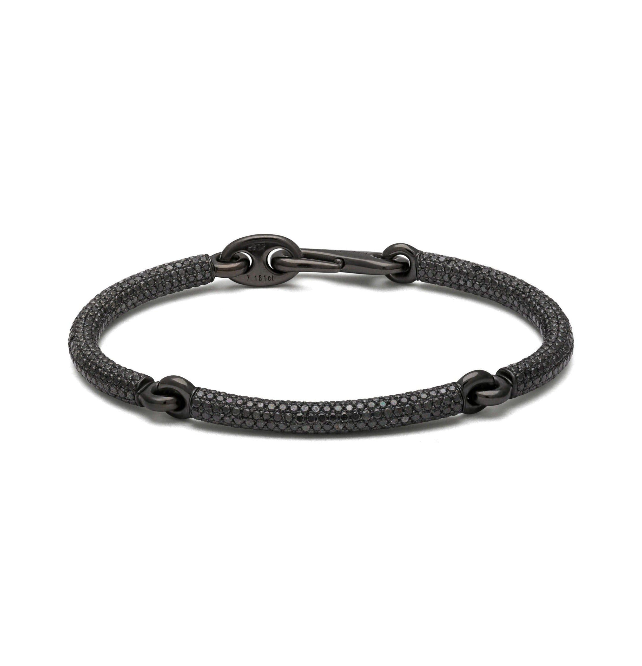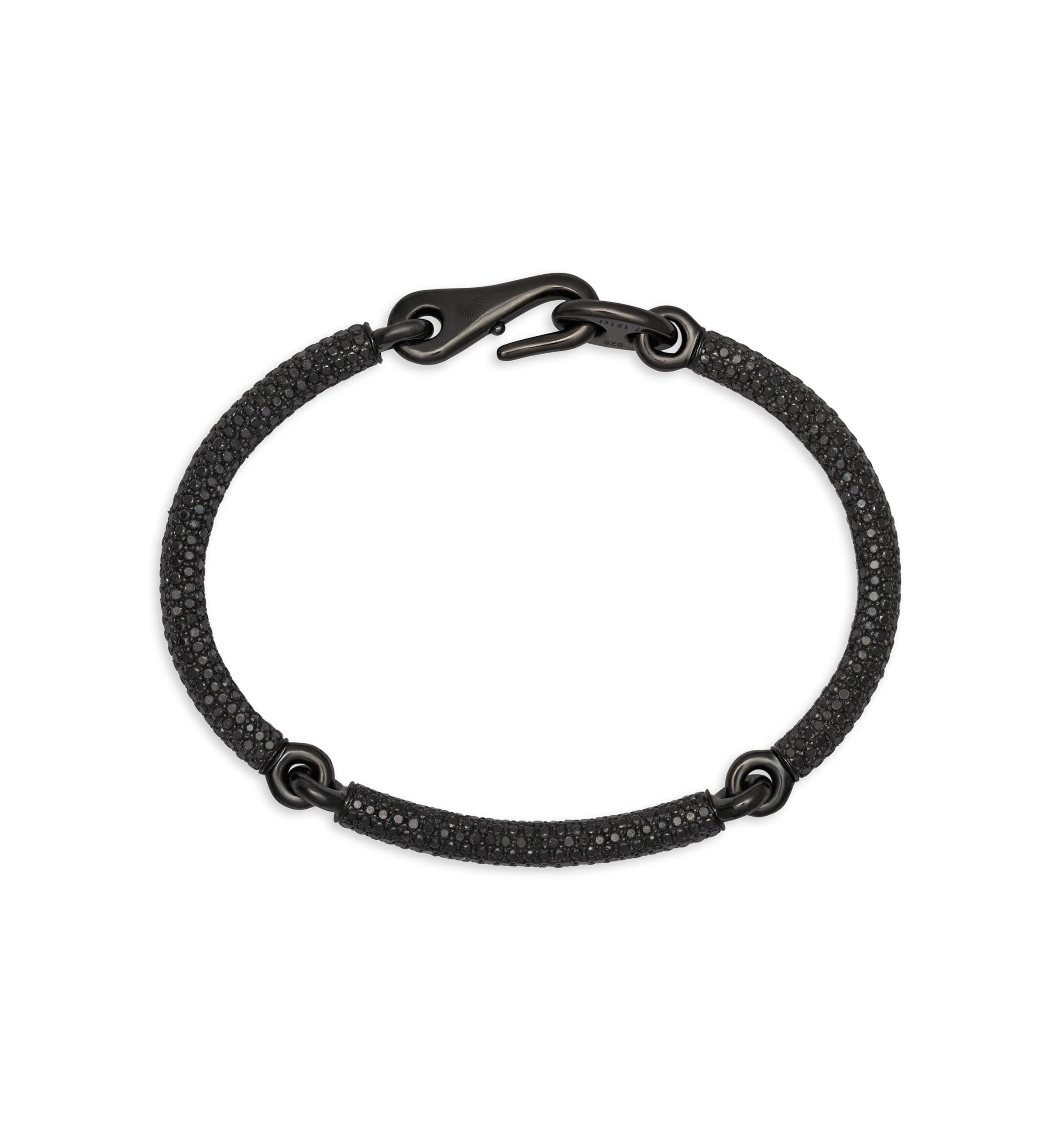 Introducing one of MAOR's most sought-after piece. The modern yet timeless design redefines a modern classic. It's three black rhodium coated 18k white gold rounded bars are enveloped entirely with honeycomb pave black diamonds. The orbital pattern allows each stone to project unprecedented brightness while making maximum direct contact with the skin.