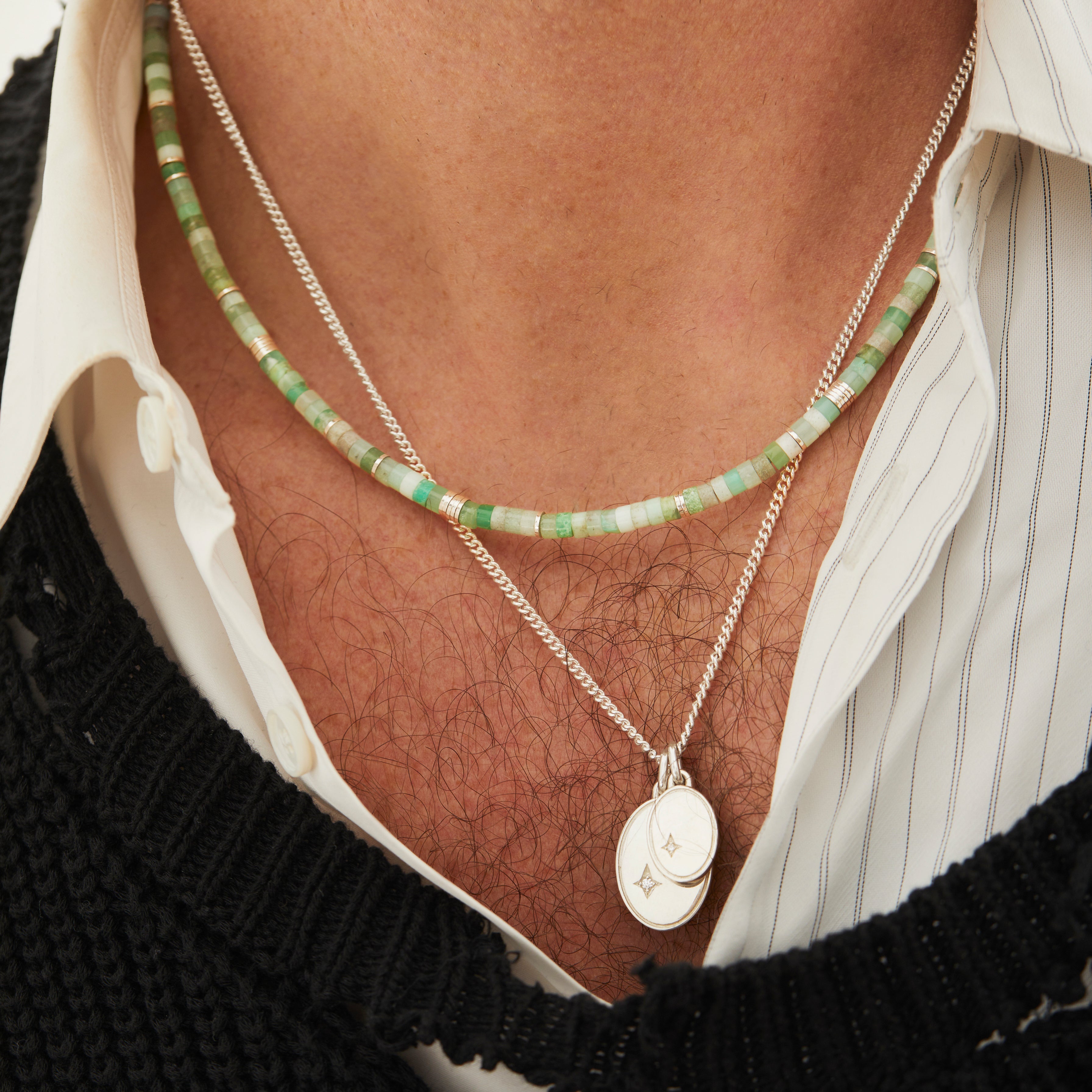 The Gudo Oval necklace is a statement of simplicity and sophistication. Made in solid 925 sterling silver and adorned with a single pavé white diamond on each charm, wear this piece as a solo statement or stacked with other MAOR necklaces.