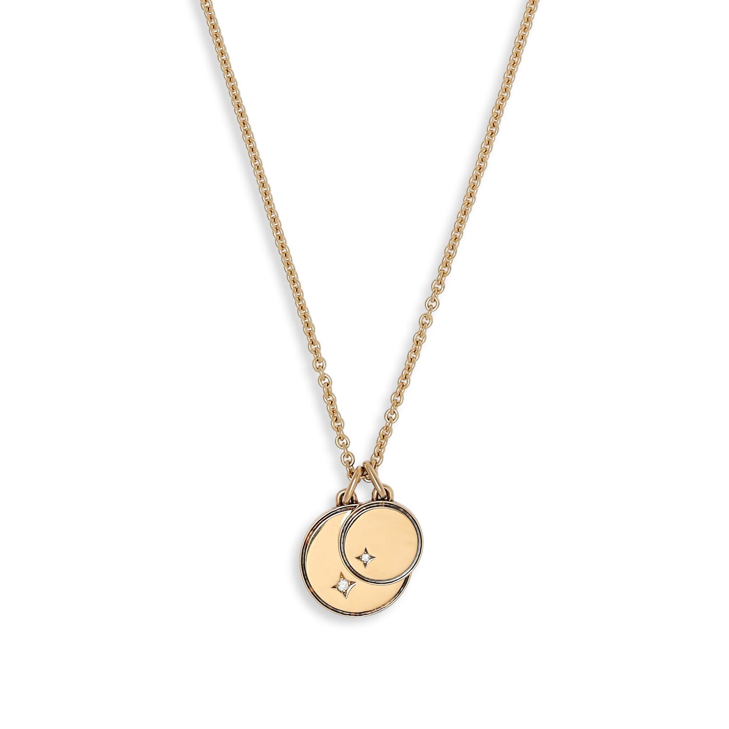 The Gudo Round necklace is a statement of simplicity and sophistication. Made in 18k yellow gold and adorned with a single pave white diamond on each charm, wear this piece as a solo statement or stacked with other MAOR necklaces.