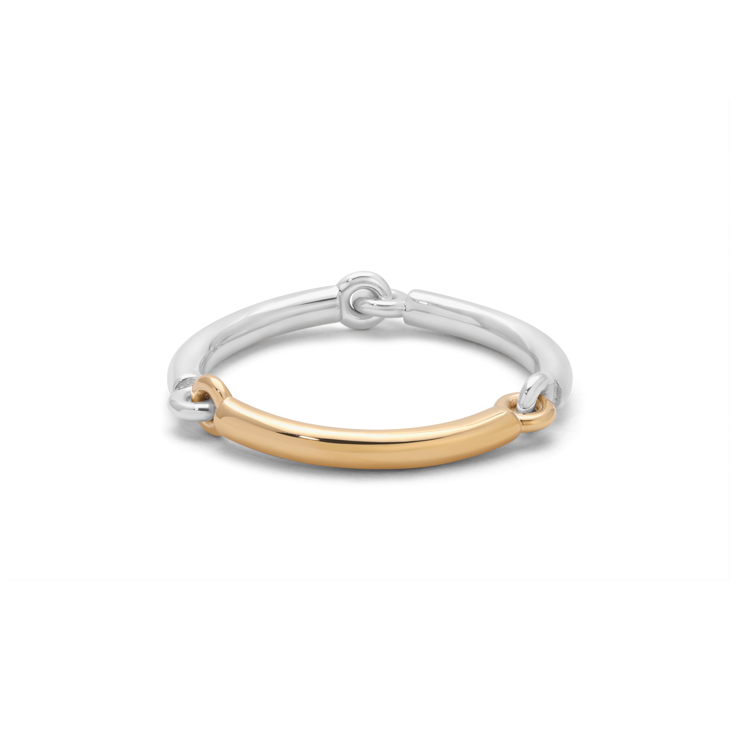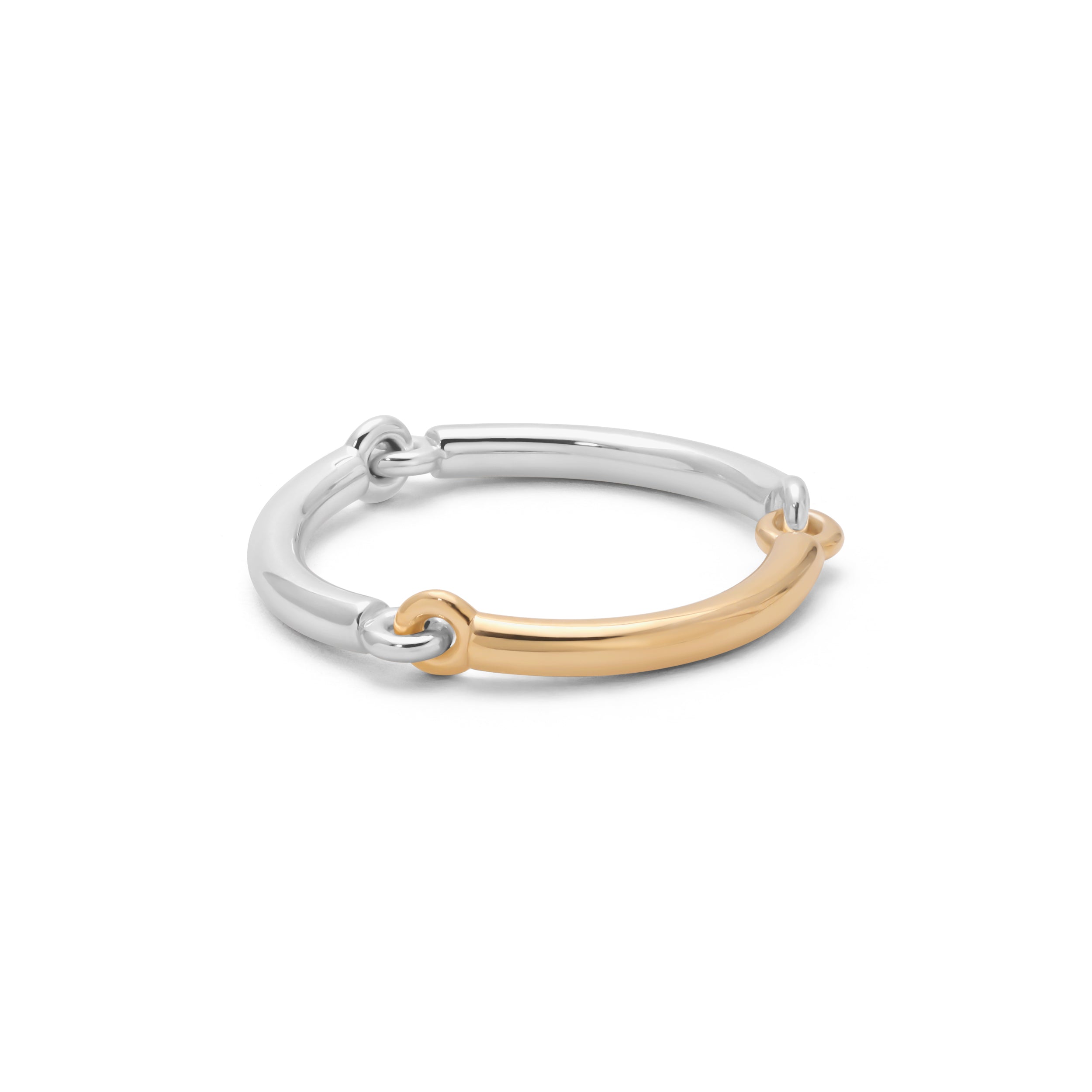 Harnessing planetary movement into solid 18k yellow gold and sterling silver, the three-part Lyra Ring is a cornerstone for any collection. Crafted to serve as a lasting symbol of empowerment, it can be worn alone for understated elegance or combined with complementary MAOR rings to create a personalized statement. This expertly designed piece balances timeless materials with meaningful design, making it an essential addition to your jewelry repertoire.