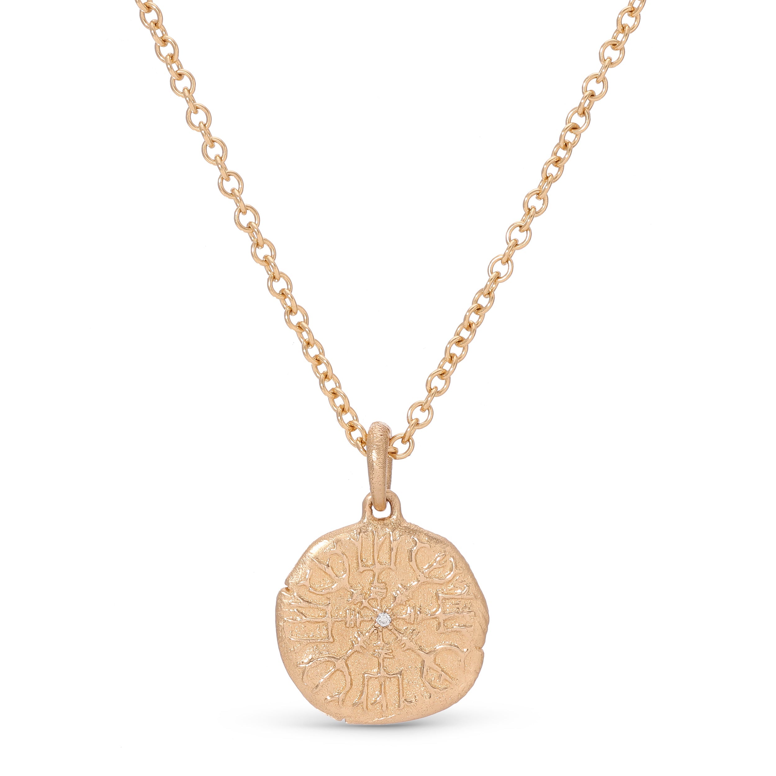 This 14k yellow gold pendant necklace, accented with a delicate diamond detail, is inspired by Tibetan culture and symbolizes empowerment. Expertly crafted, it serves as a powerful emblem of empowerment, offering both cultural depth and refined elegance. Wearing this pendant is a meaningful way to carry a reminder of resilience and success in every challenge.