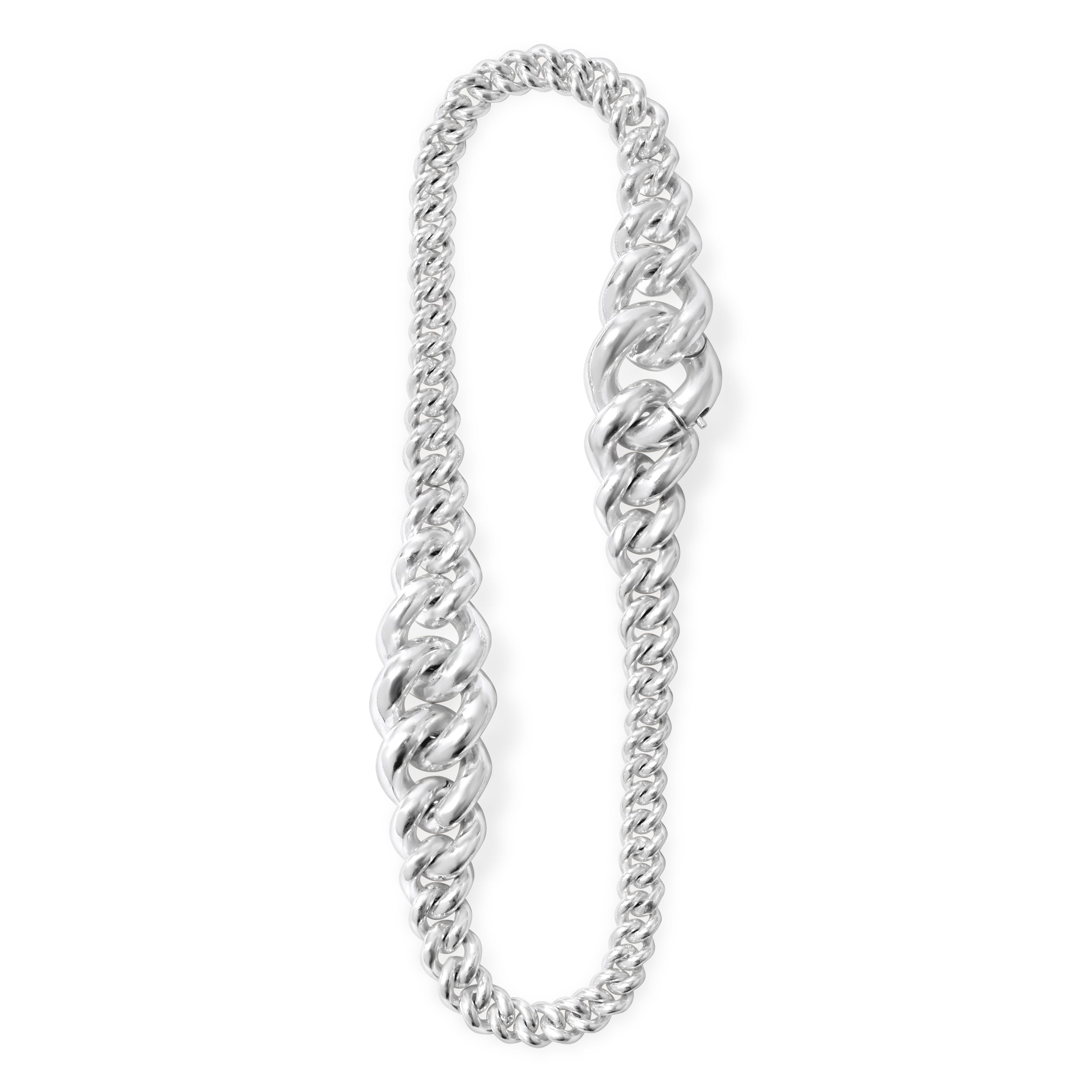 This Mic Curb Link Bracelet is expertly crafted in sterling silver with two graduating sections, creating a modern and stylish design. The unique curb link adds a touch of sophistication to any outfit. Crafted with precision and quality materials, this bracelet is sure to elevate your style.