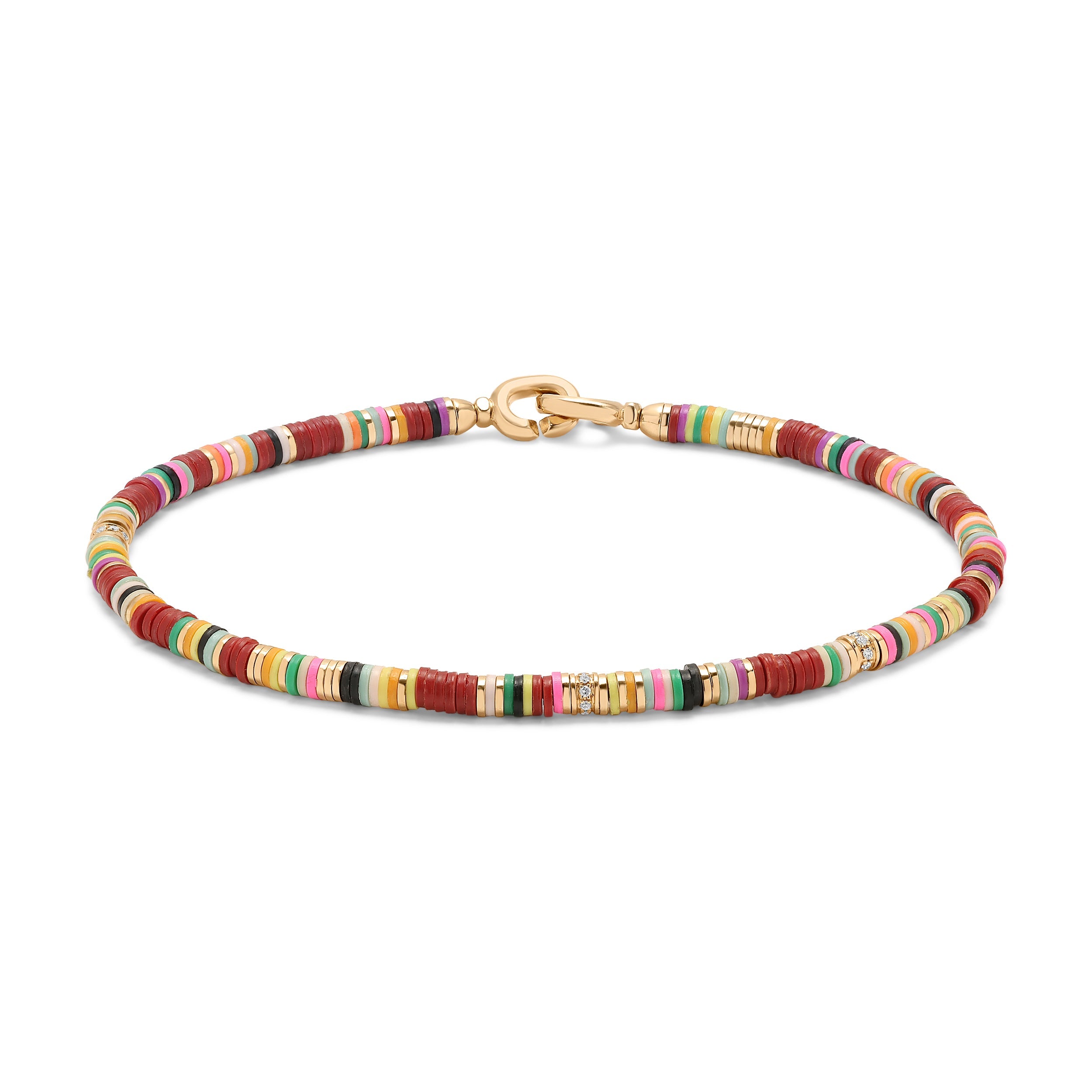 Expertly crafted with 18k yellow gold, this Mini Malli bracelet features a stunning maroon pattern adorned with vibrant African trade beads. Elevate your style with this unique and luxurious accessory.