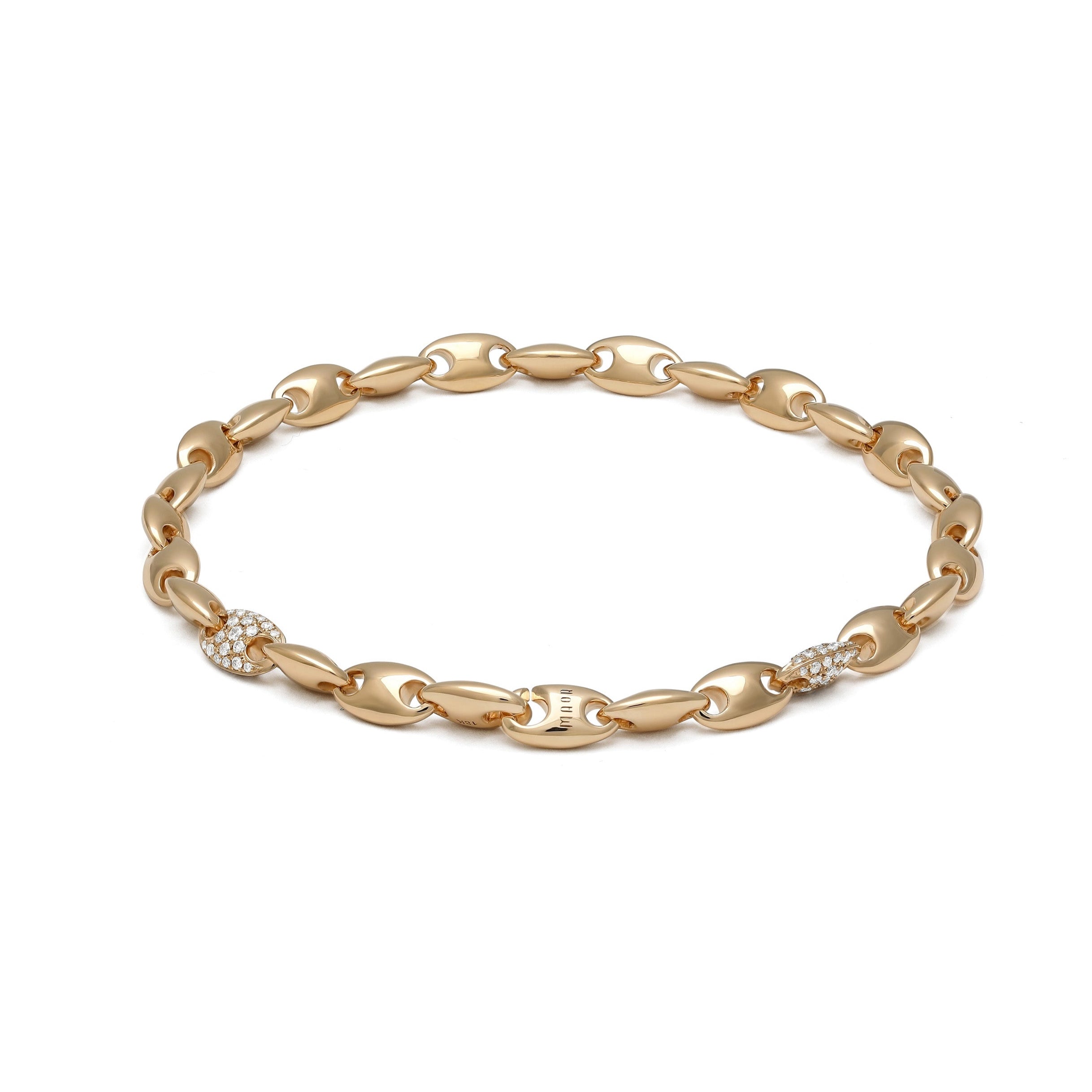Inspired by Victorian Age artisan, this modern twist on classic design gives new life to a texture as bold as it is elegant. The solid 18k yellow gold Neo bracelet is expertly crafted to be worn as a solo statement or elevate any stack of complementary pieces. 4mm is the midpoint of four choices with white diamond pave identifying the closure.