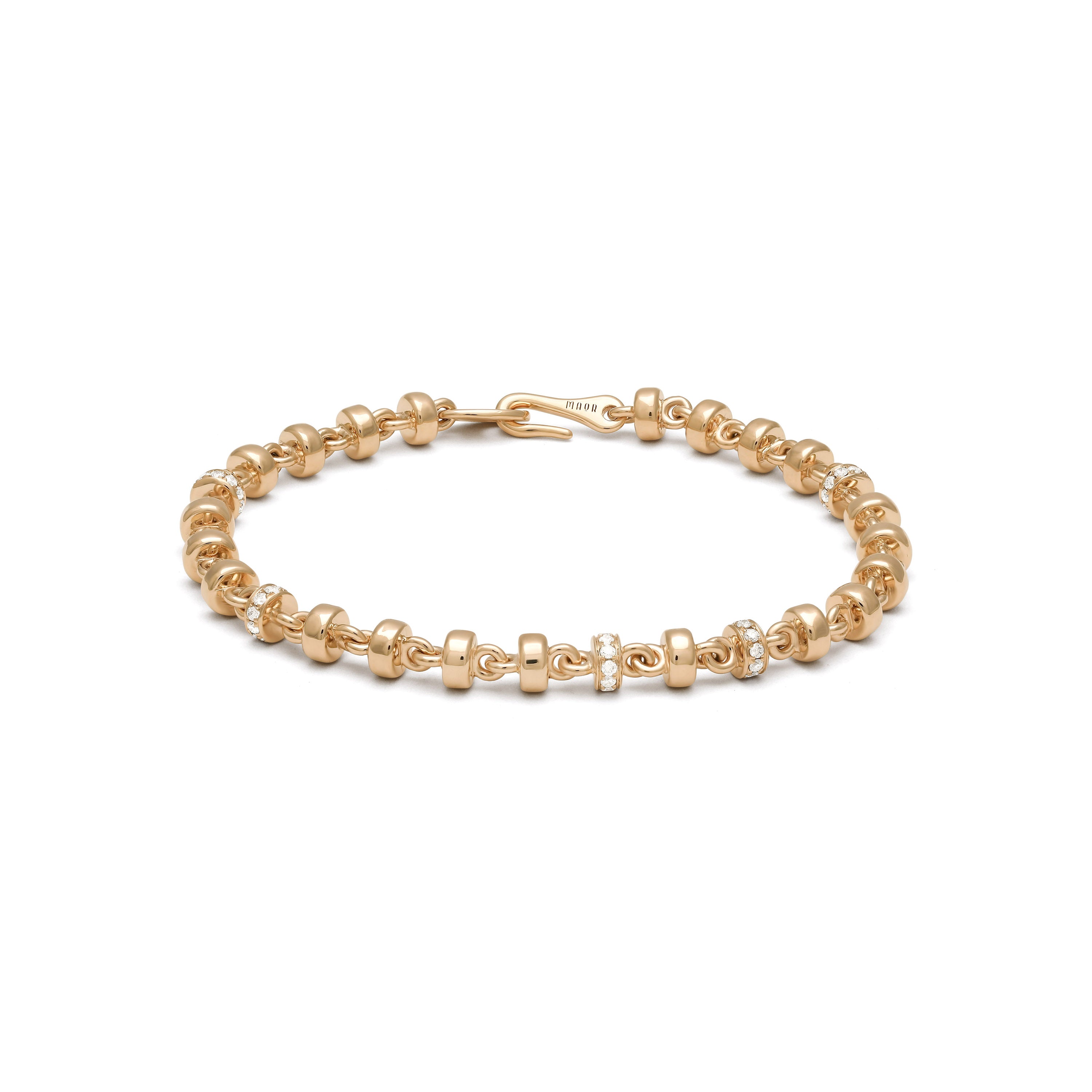 The Omni design is the true definition of timeless. The uniquely balanced sequence of solid 18k yellow gold links accented with pave pattern white diamonds makes this a foundational piece for every collector. 5.5mm is the thickest of the choices.