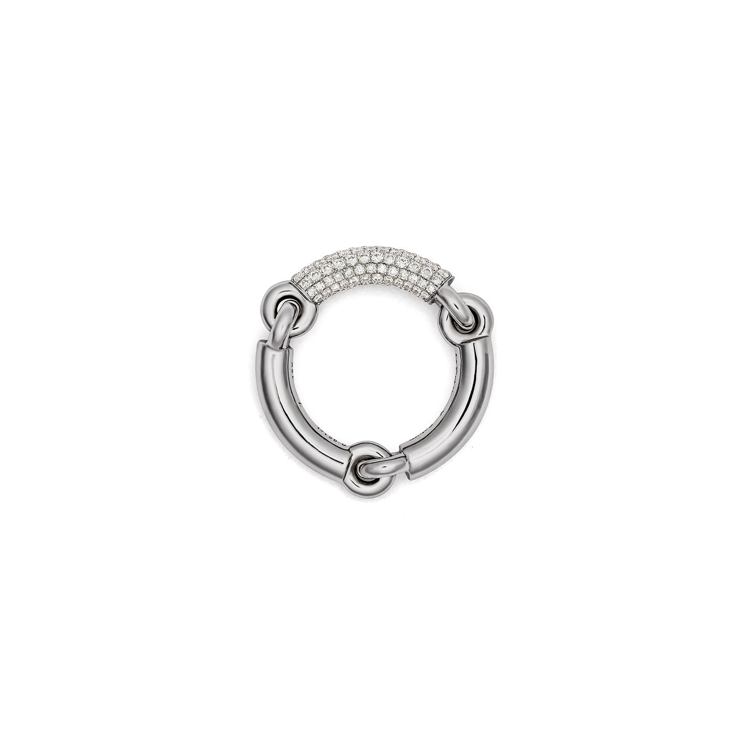 Embodying constant movement within perfect balance, the single honeycomb pave white diamond bar floats effortlessly between two links of solid 18k white gold. This Solstice is expertly crafted to be worn as a solo statement piece or elevate any stack of complementary rings.
