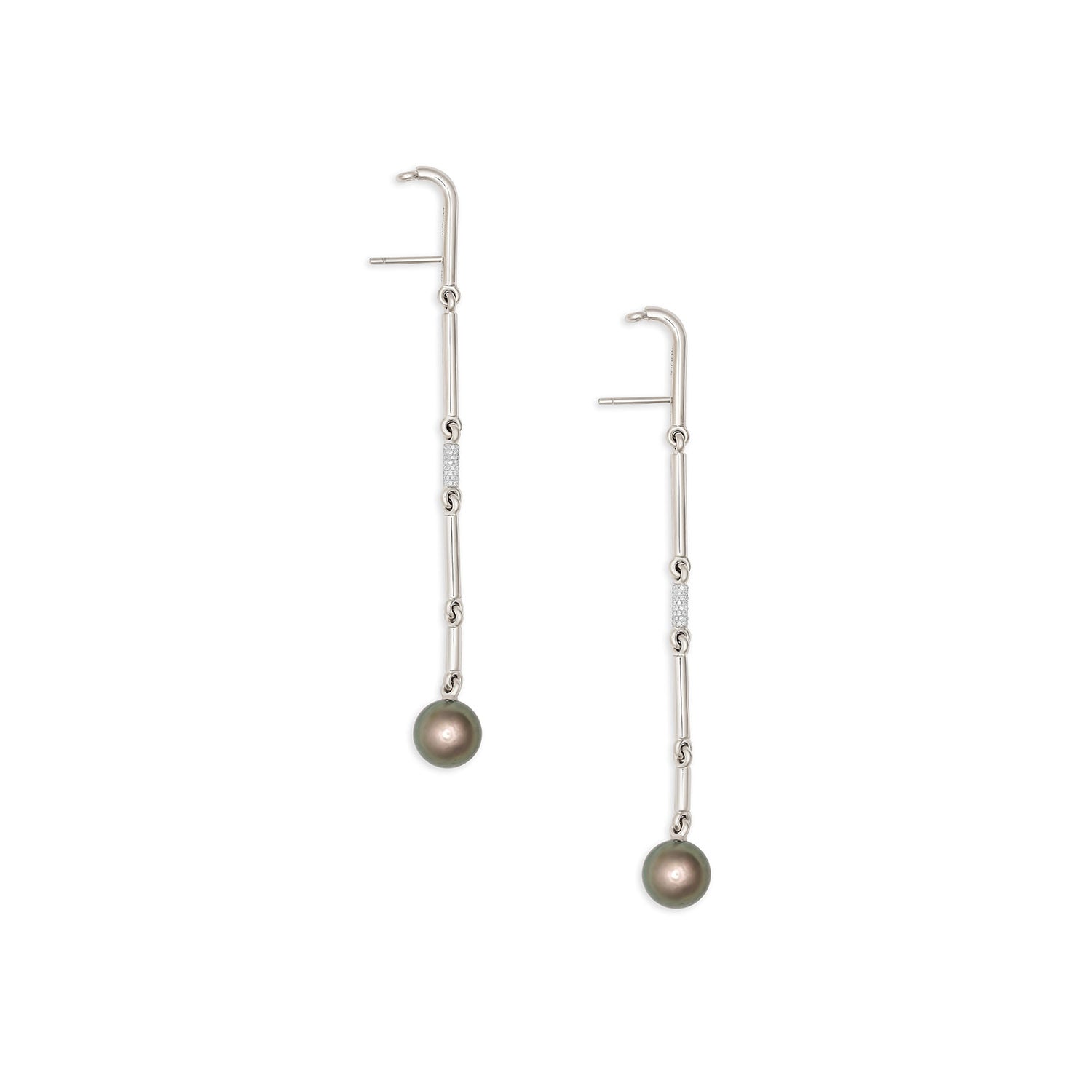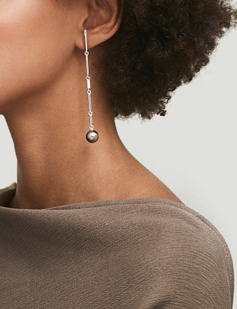 Orion Single Earring | Tahitian Pearl | Pave Detail | White Gold