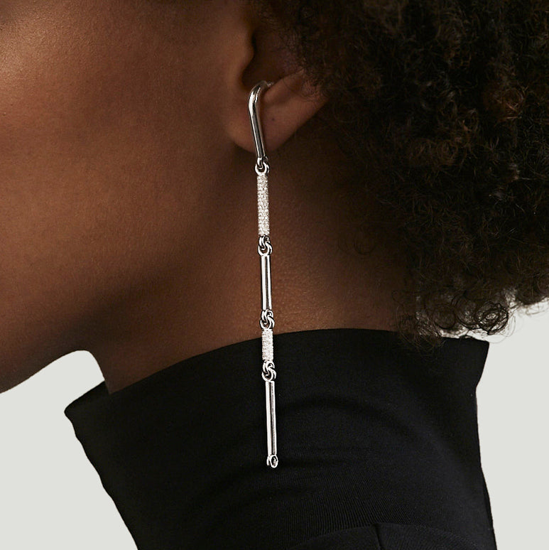 Harnessing the energy of the constellations into solid 18k white gold accented with white diamond pave, this Orion earring is a statement piece for the confident. Wear on its own or as a pair.