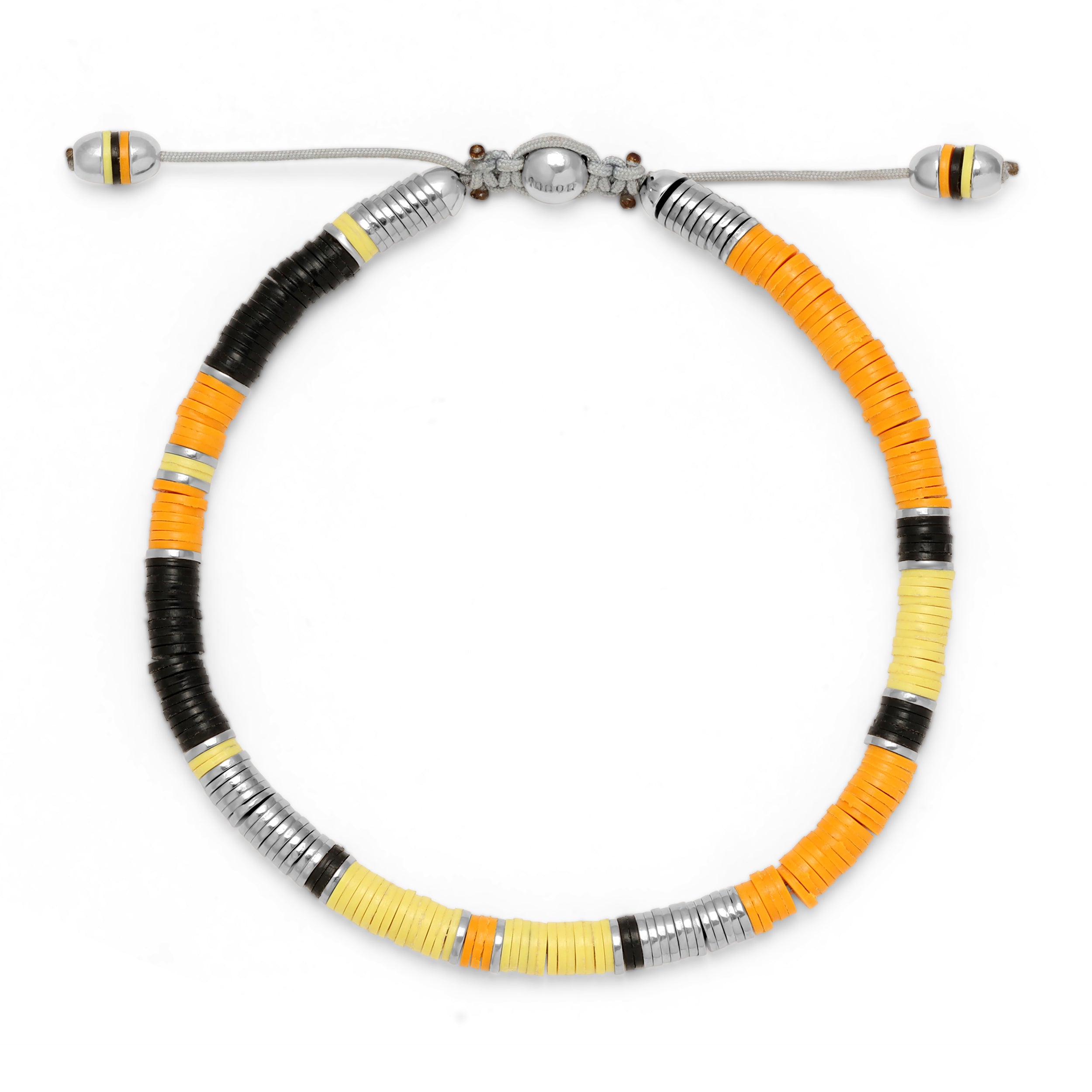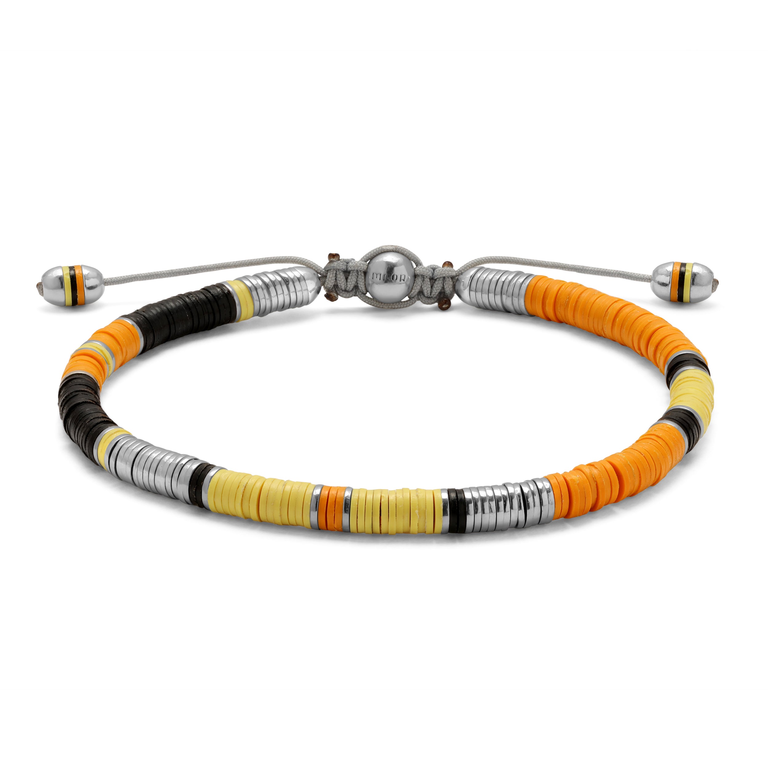 Expertly crafted from 925 sterling silver, the Palli bracelet showcases a stunning pattern of African trade beads and discs. With its orange hues, this piece effortlessly combines style and quality for a unique and elegant accessory. Elevate any outfit with this one-of-a-kind piece.