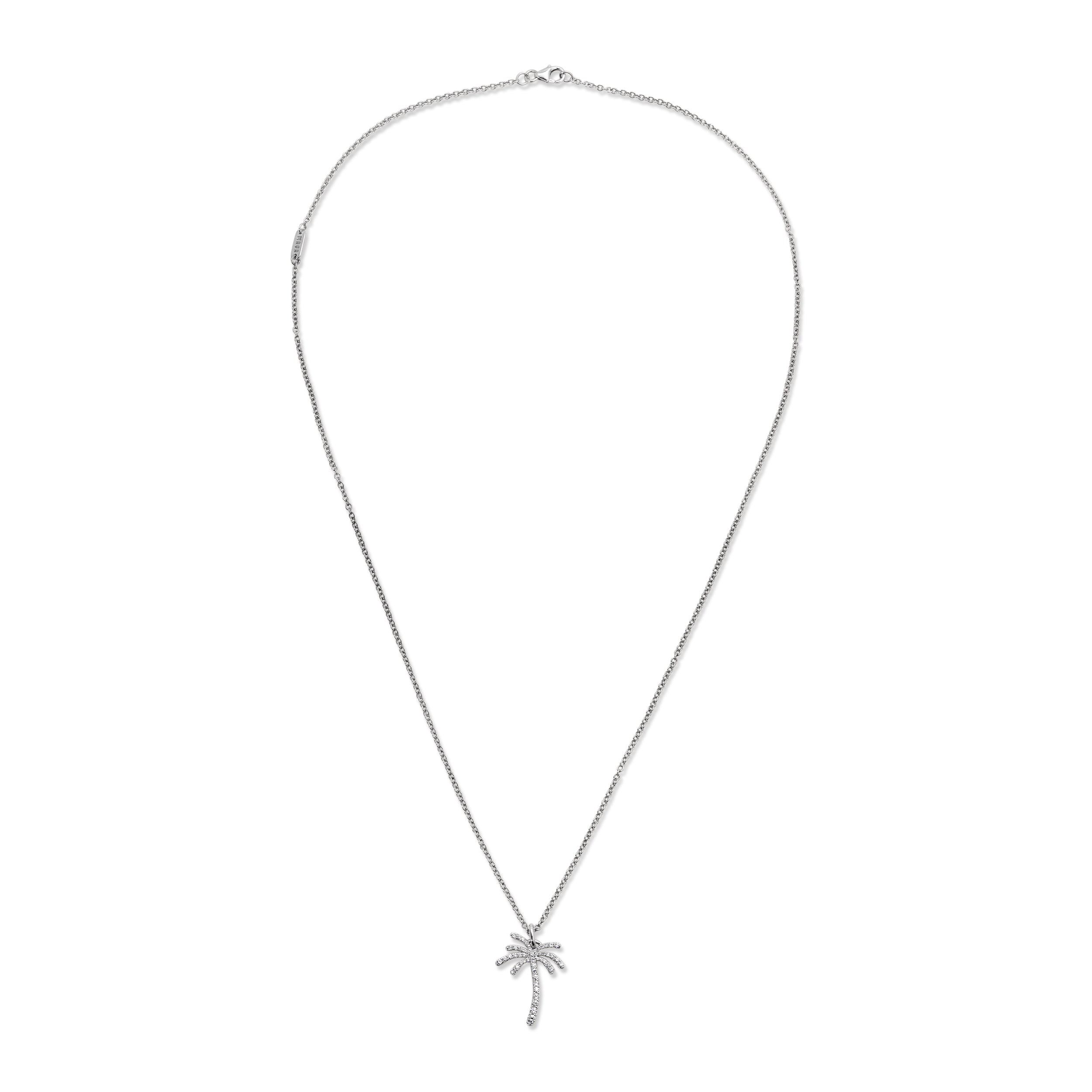 Inspired by our home of Los Angeles, the Paradisa necklace brings the sun-soaked spirit of the Southern California coast to the stunning 18k white gold palm tree set with white pave diamonds. Wear this piece as a stunning solo statement or in a stack of MAOR necklaces.