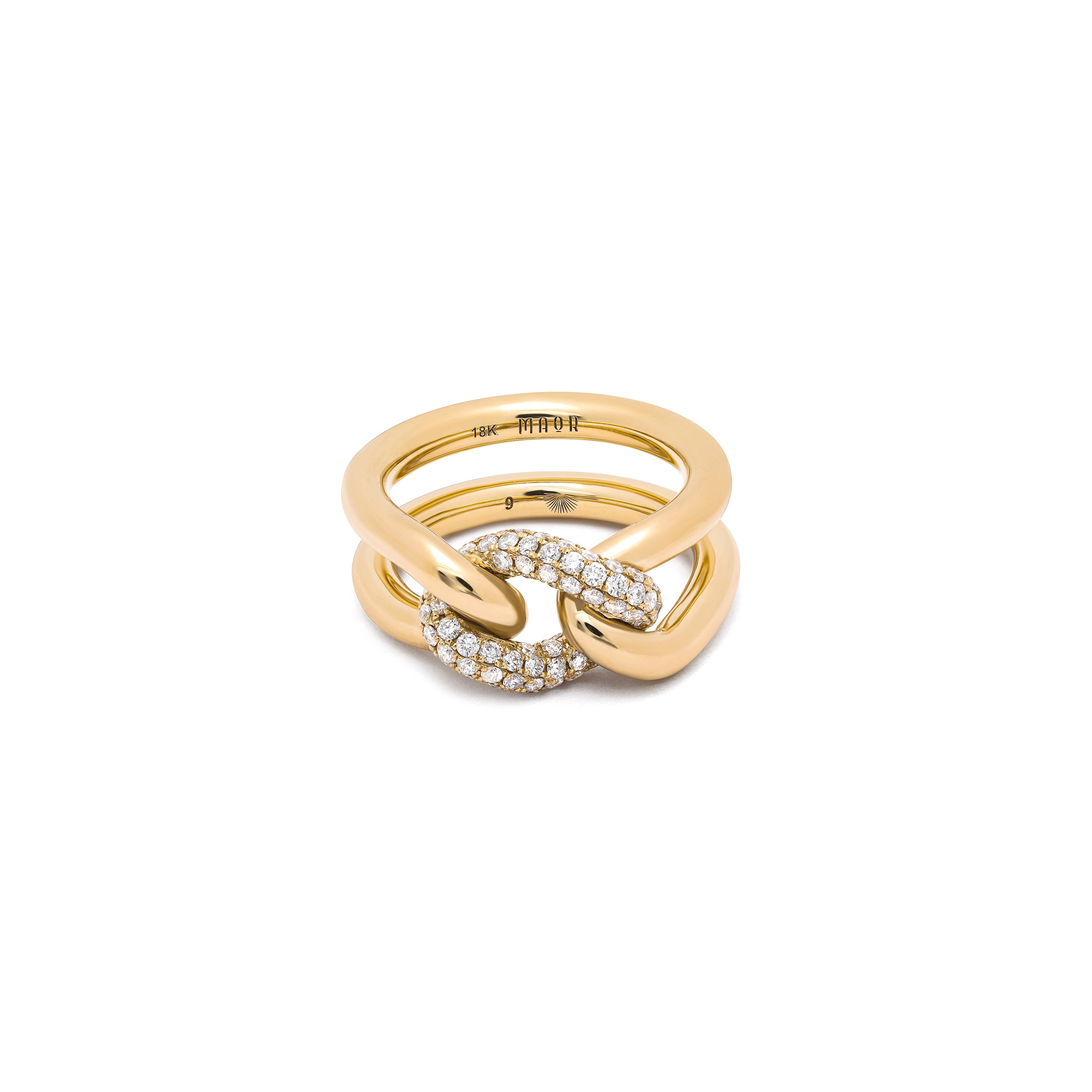 Where the city's edge meets high society, Unity ring commands attention as an instant classic. The honeycomb white diamond link set in solid 18k yellow gold creates a bold solo statement that also stacks perfectly next to complementary rings.