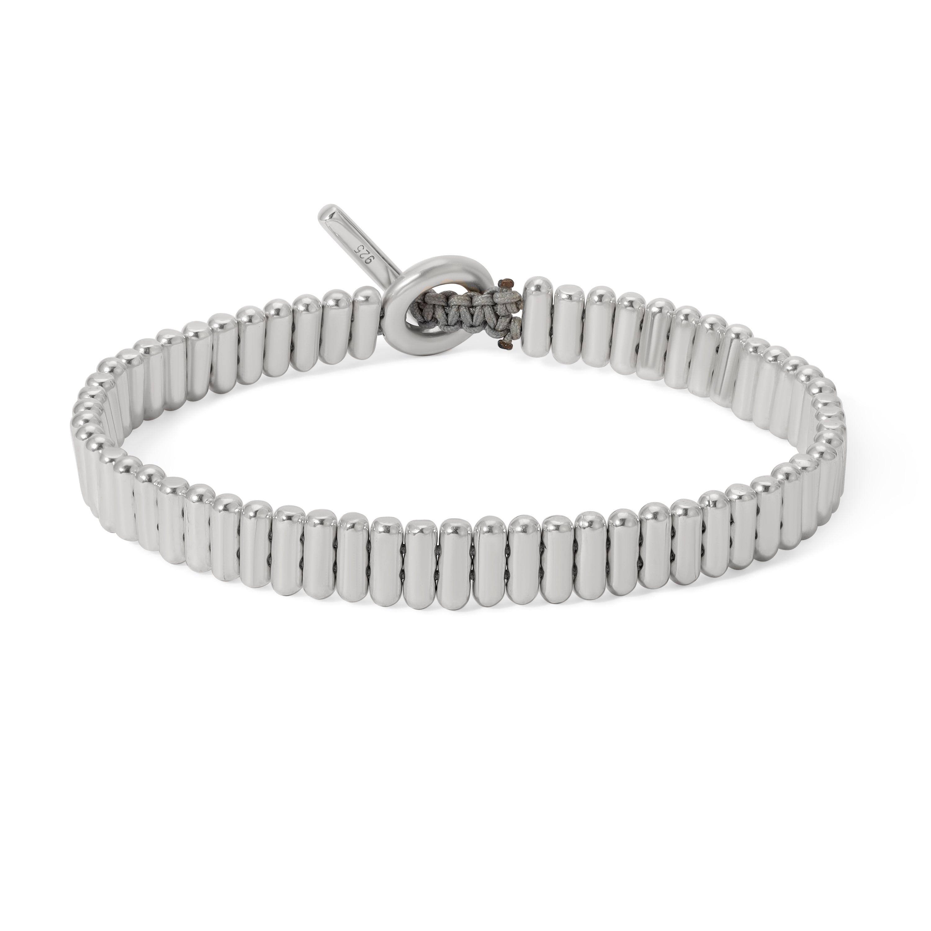 The Pellet Bracelet in our small scale is crafted from high-quality sterling silver, offering a sleek and sophisticated look. With its bold and modern design, it adds a touch of elegance to any outfit. Wear this classic M. Cohen design alone or part of your MAOR stack.