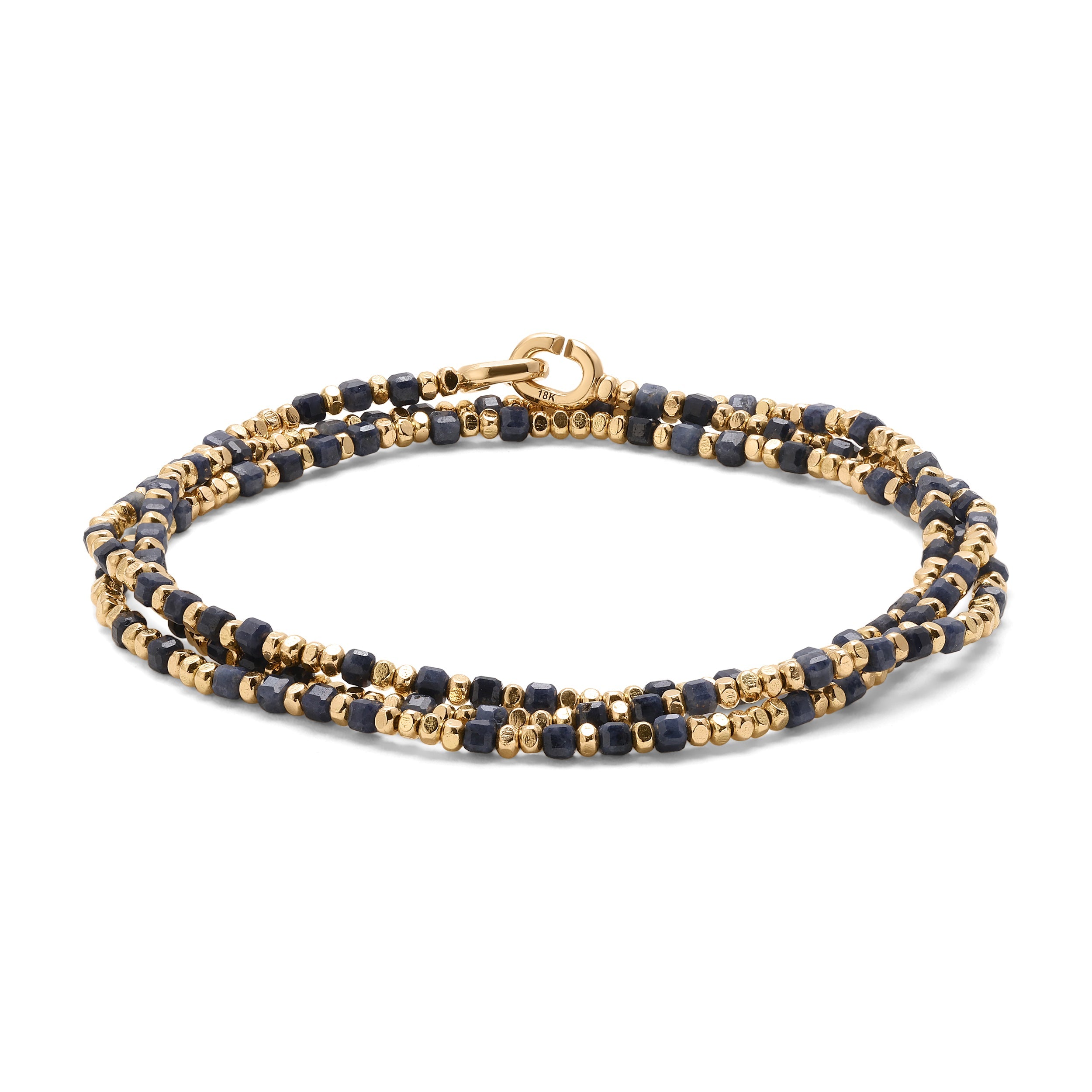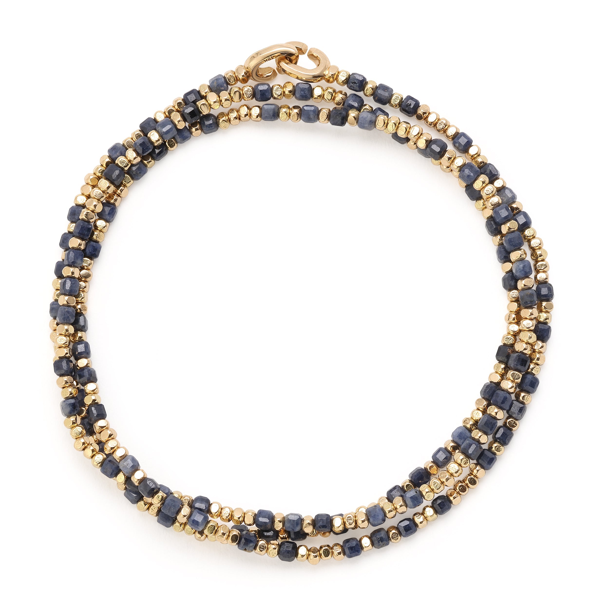 Percep Necklace/Bracelet | Three Wrap | Sapphire | Yellow Gold