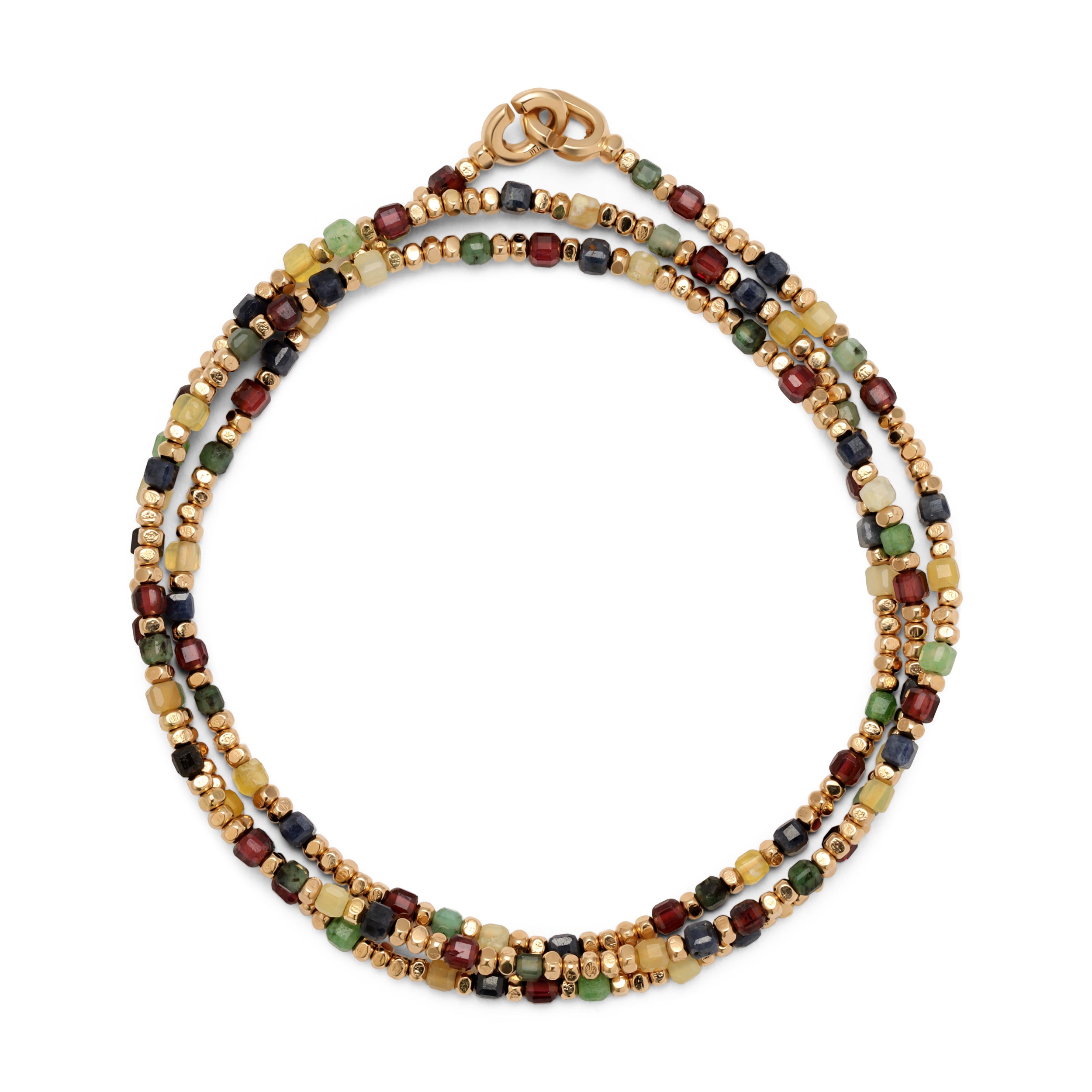 Percep Necklace/Bracelet | Three Wrap | Mixed Stone | Yellow Gold