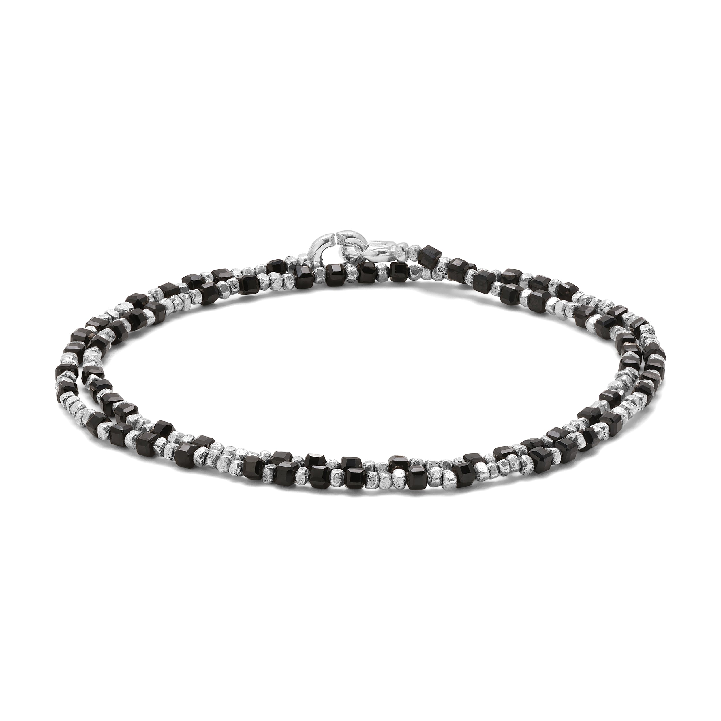 The Percep Two Wrap Bracelet is expertly crafted with sterling silver and elegant onyx beads. The cornerless design adds a unique touch to this stunning piece, making it perfect for any occasion. Elevate your style with this luxurious and timeless accessory.