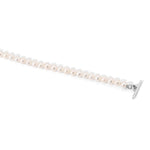 The modern fresh water white pearls necklace with an edgy addition of 925 sterling silver chain, perfect as a unisex item. We recommend the short look amongst other MAOR necklaces.