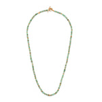 Elevate your style with the Pillon Necklace/Bracelet, crafted from 18k yellow gold and emerald beads. Each piece showcases the unique hues and patterns of the gemstones, ensuring a distinctive accessory. Versatile in design, it can be elegantly worn as a necklace or wrapped as a bracelet, adding refined sophistication to any ensemble.