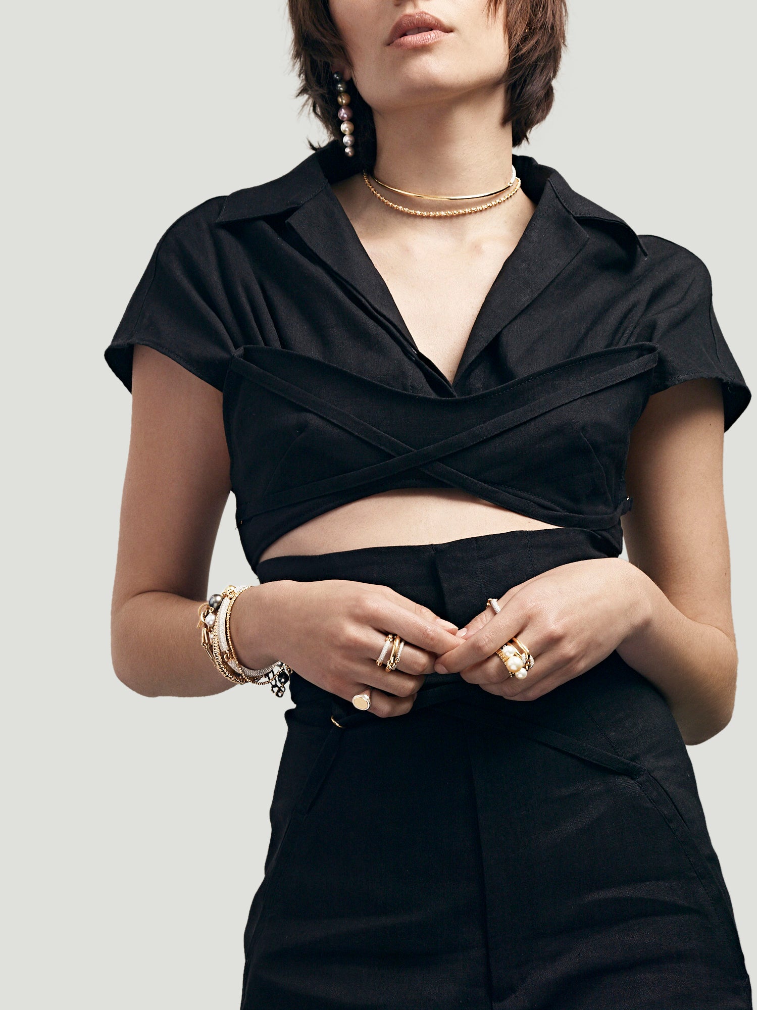 With a unique pattern of the finest mutli-color and shape South Sea pearls, the Pnina earring is a true modern classic, and the perfect bold statement. Wear this piece as a stunning solo or as a pair.
