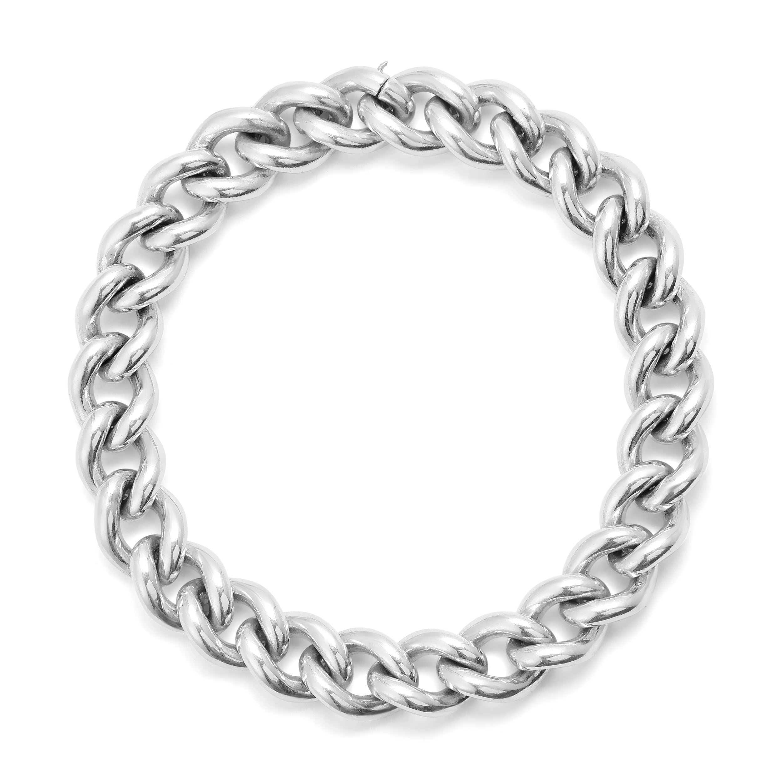 This Rein Curb Link Bracelet is expertly crafted from high-quality sterling silver. Its sleek and modern design adds an elegant touch to any outfit. The durable material ensures long-term wear and timeless style. Upgrade your jewelry collection with this stunning piece.