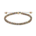 The Rical Bracelet showcases expertly crafted 18k yellow gold discs accented with white diamond pavé and radiant labradorite gemstones. This design combines the warm glow of gold with the dynamic shimmer of labradorite and the brilliance of diamonds, resulting in a sophisticated accessory that enhances any ensemble with timeless elegance and refined craftsmanship.