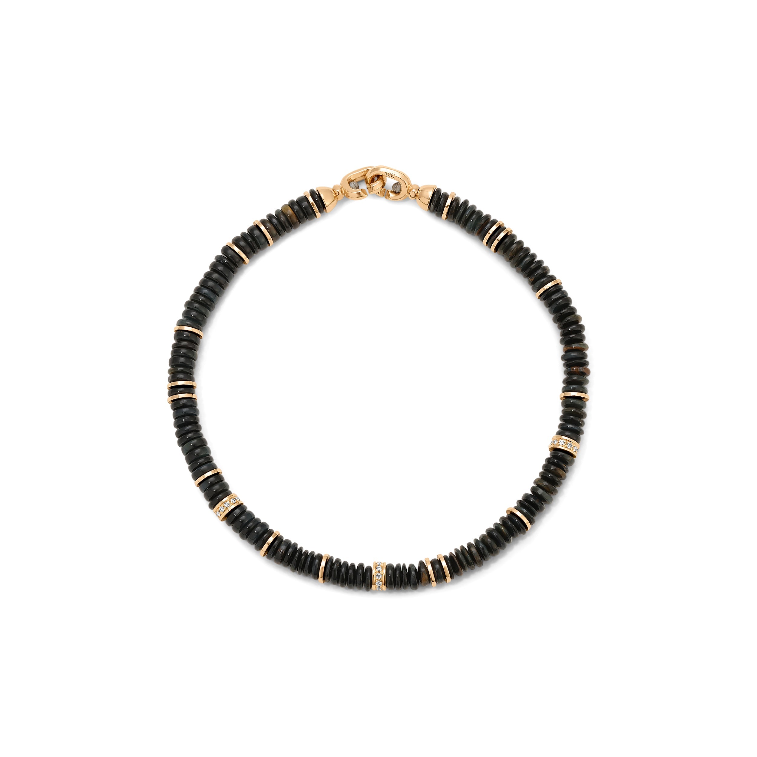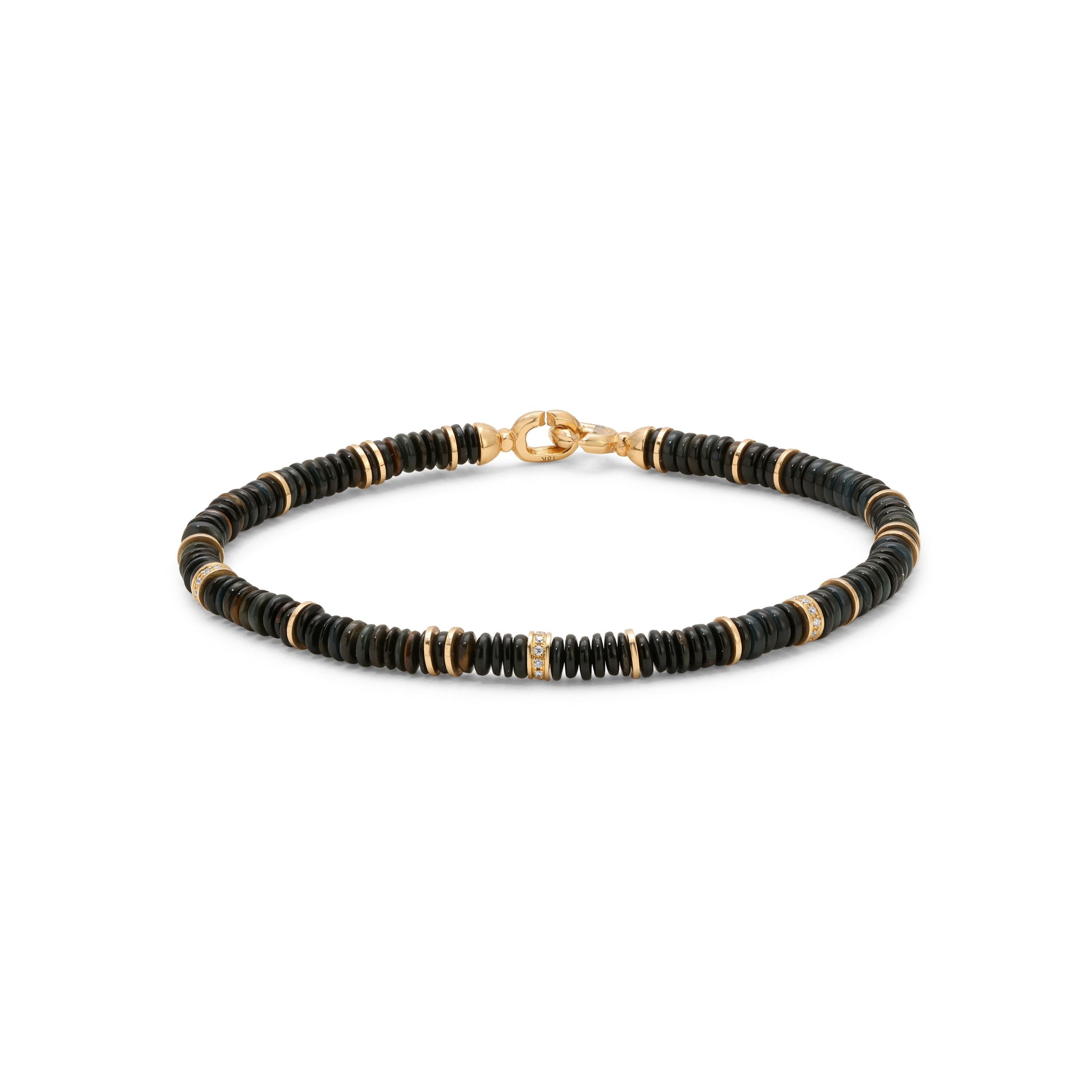 Shine Bracelet | 4mm | Pave Detail | Blue Tiger Eye | Yellow Gold