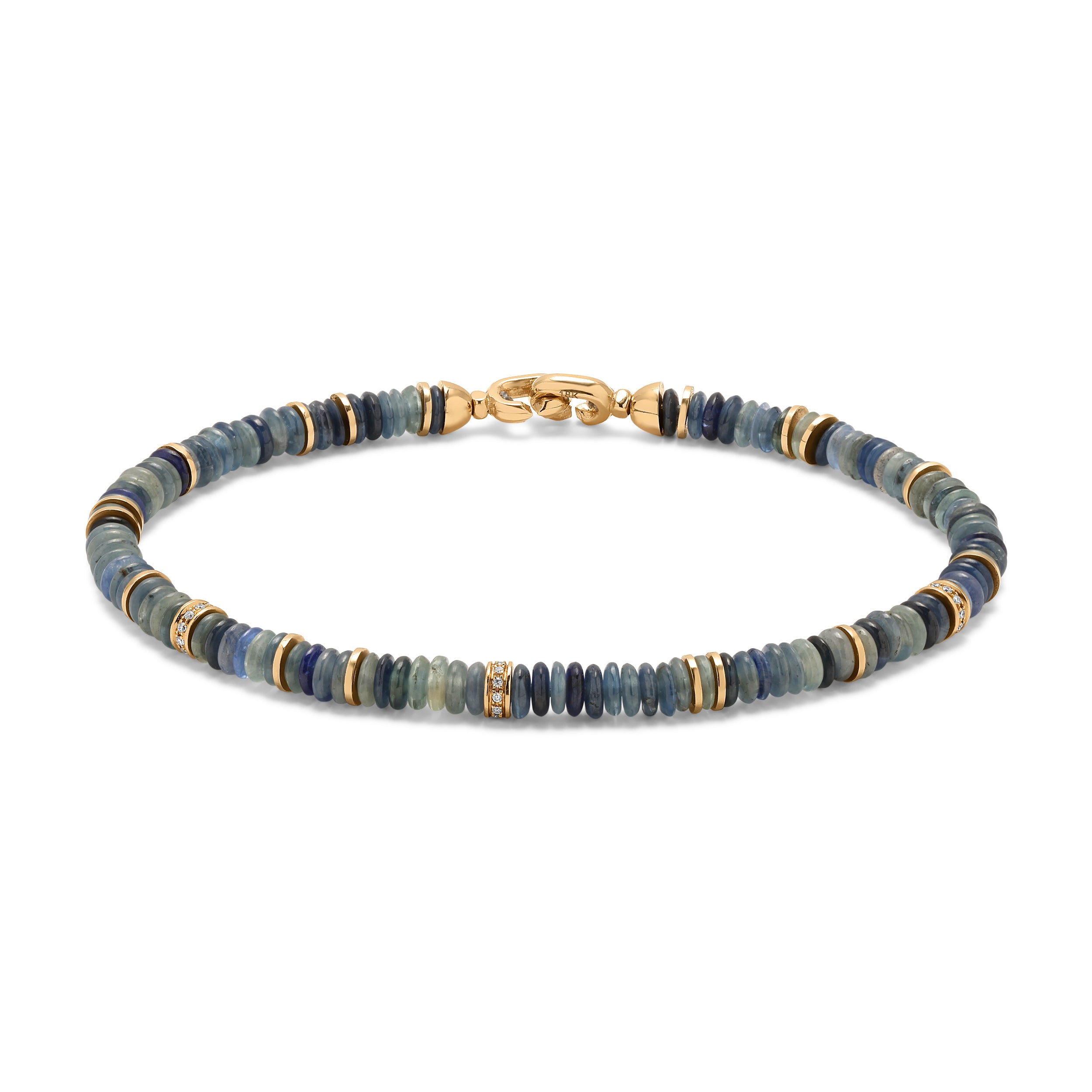 Expertly crafted with 4MM Sapphire beads, this Shine Bracelet exudes elegance and sophistication. The stunning contrast of Yellow Gold and Diamond Details adds a touch of luxury. Elevate your look and indulge in the natural beauty of Lapis with this exquisite bracelet.