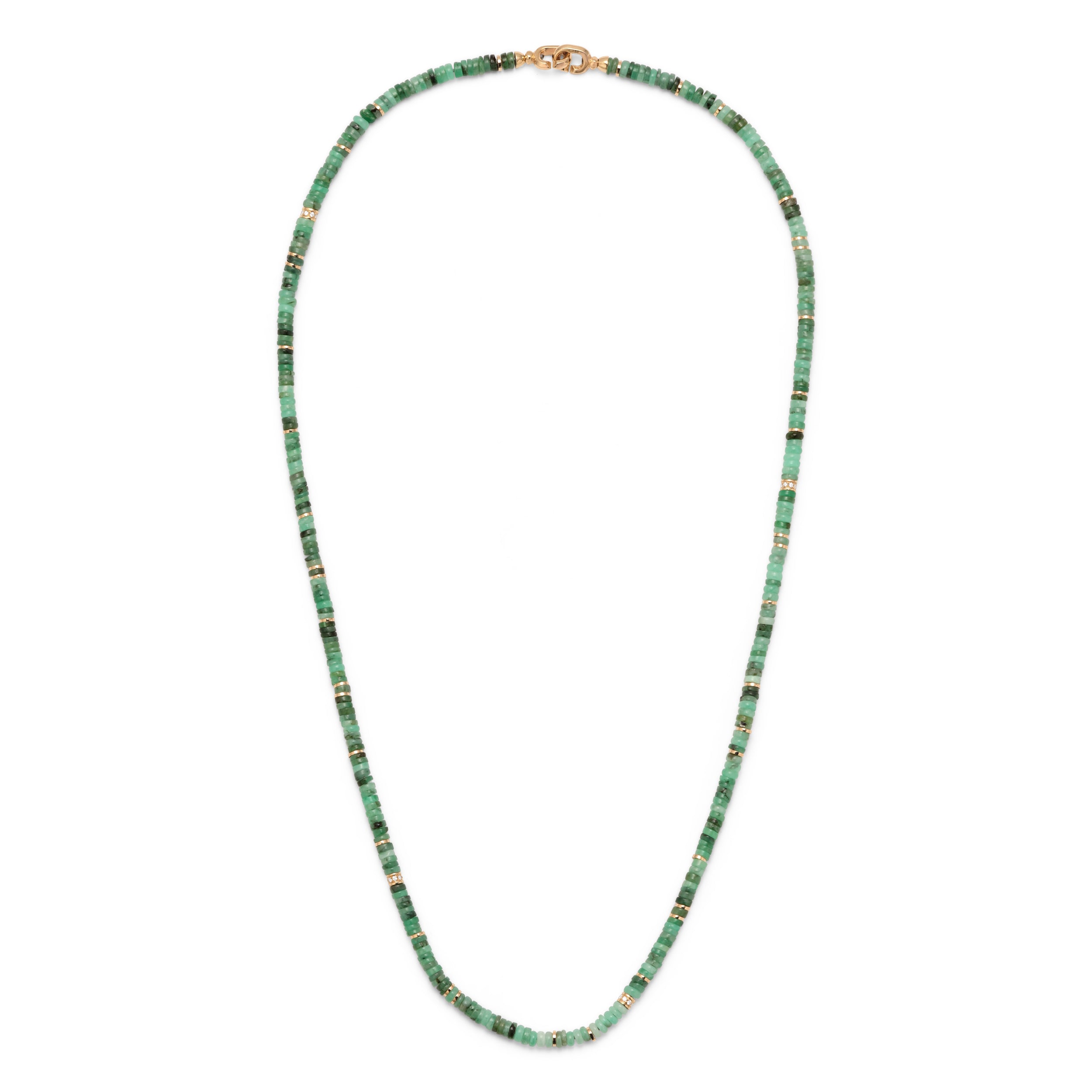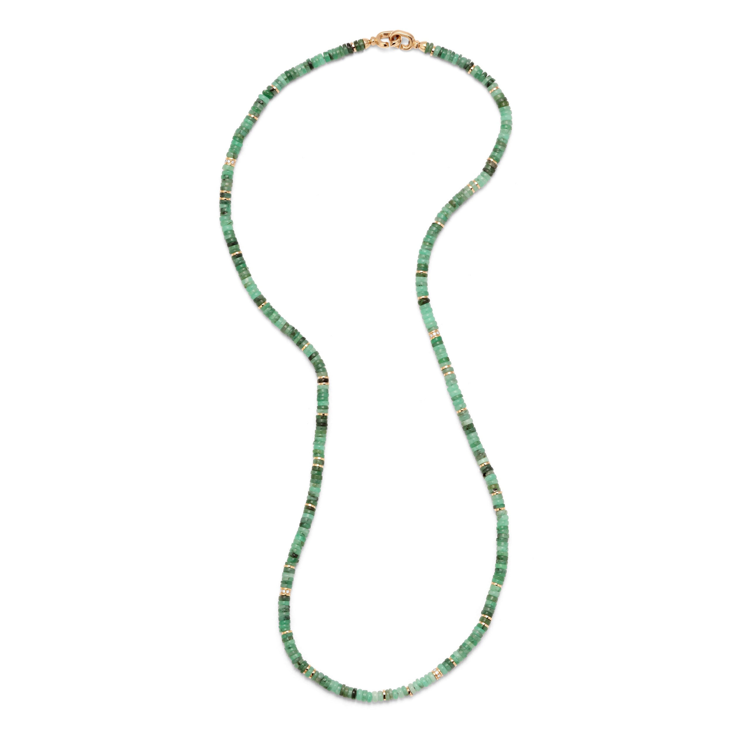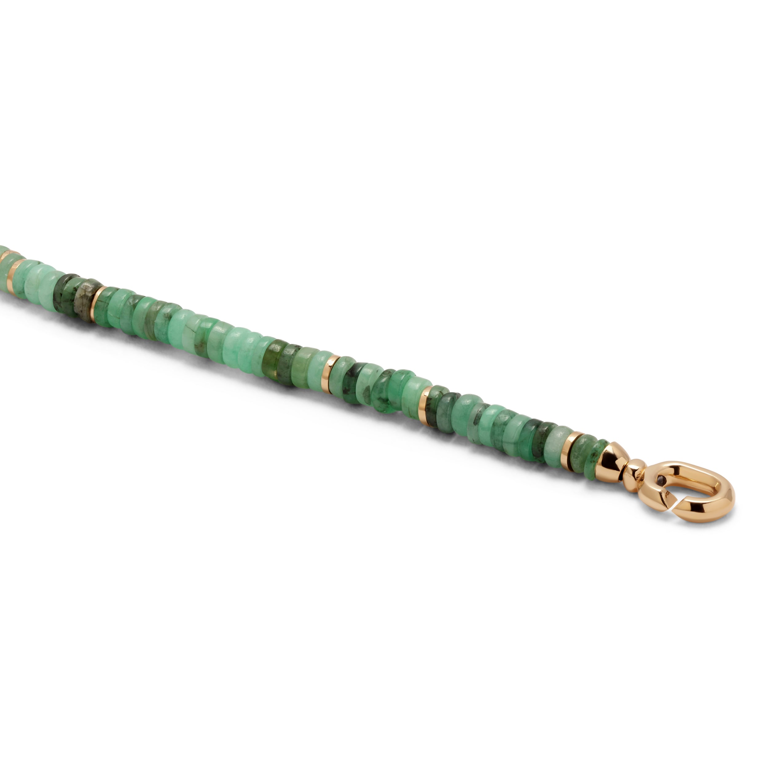 Expertly crafted with 3.5MM emerald beads and luxurious yellow gold, this Shine Necklace/Bracelet features stunning diamond details for a touch of elegance. Perfect for adding a pop of color and sophistication to any outfit. Elevate your jewelry collection with this versatile piece.