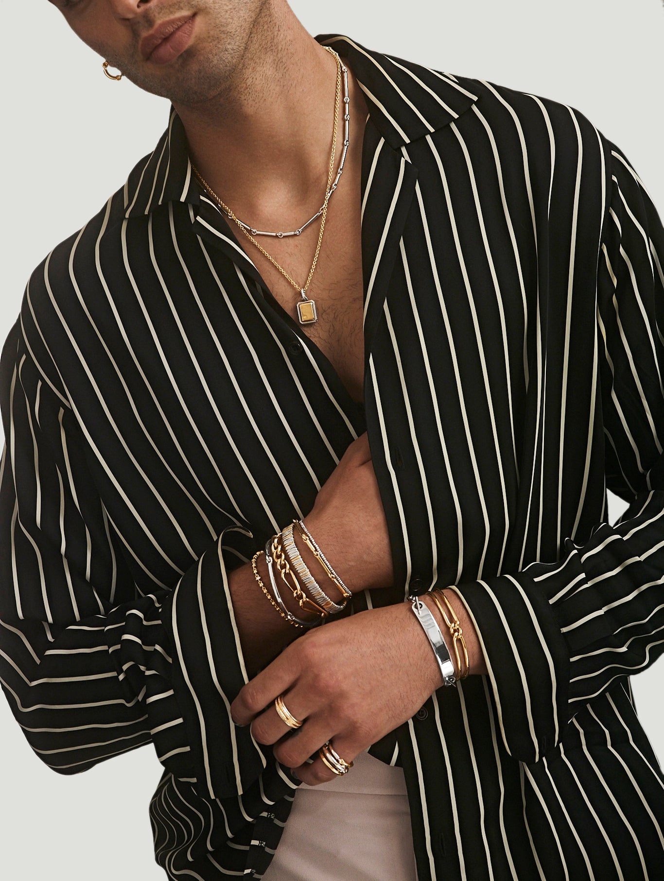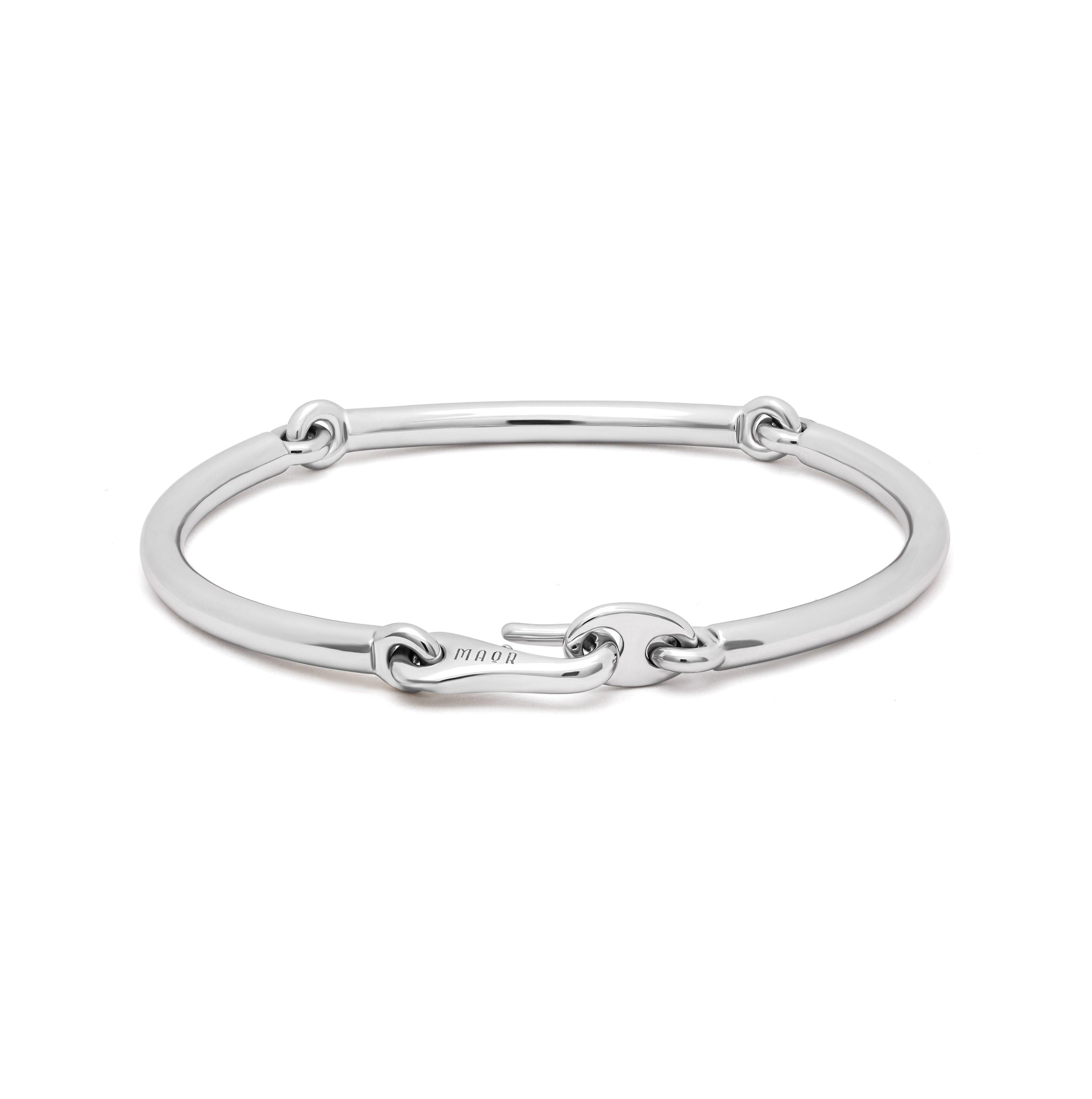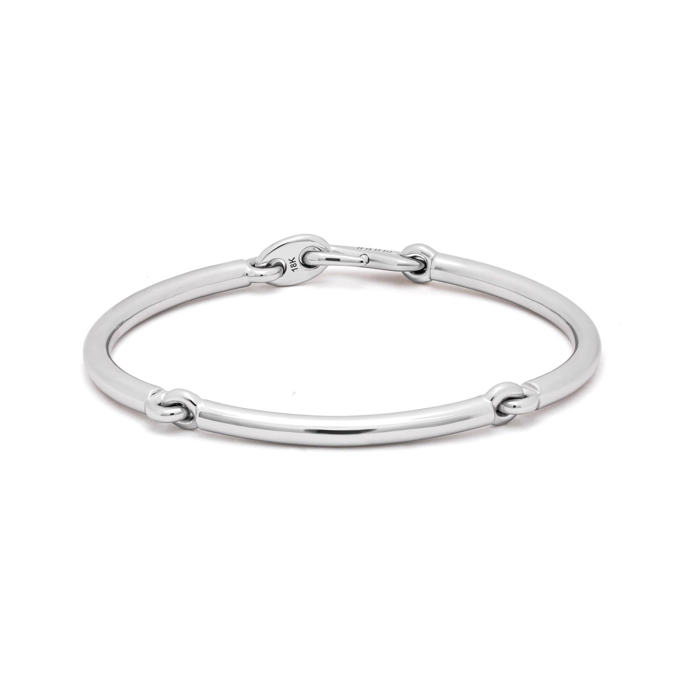 Harnessing the movement of the planets into solid 18k white gold, this Solstice is a foundational piece for every collector. Whether worn on its own or elevating a stack, the solid bracelet is designed to live on the wrist as a permanently empowering force for its owner.