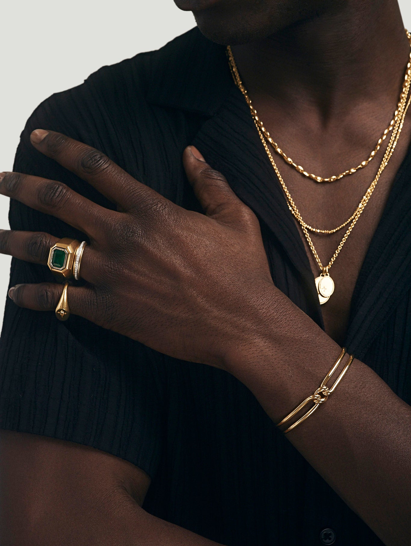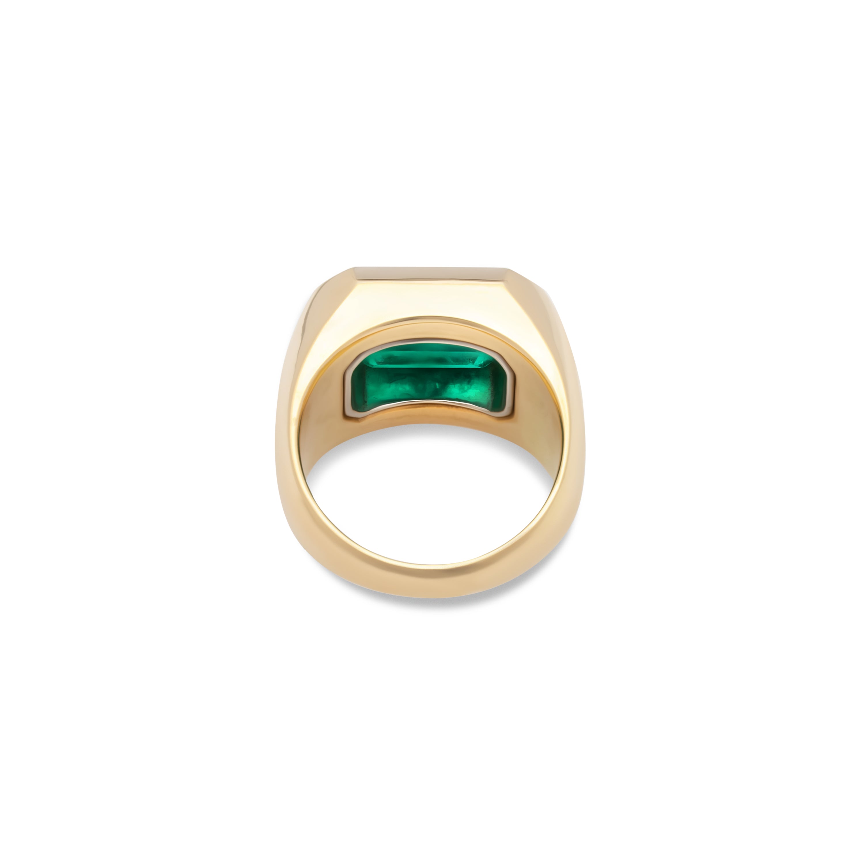 Forward-thinking yet instantly classic, the Solitaire ring breaks the conventional mold by exploring the pairing of both solid 18k yellow gold outer mass with platinum surrounding the emerald precious stone. A great statement piece, wear this solitaire ring in any of the main fingers or paired.