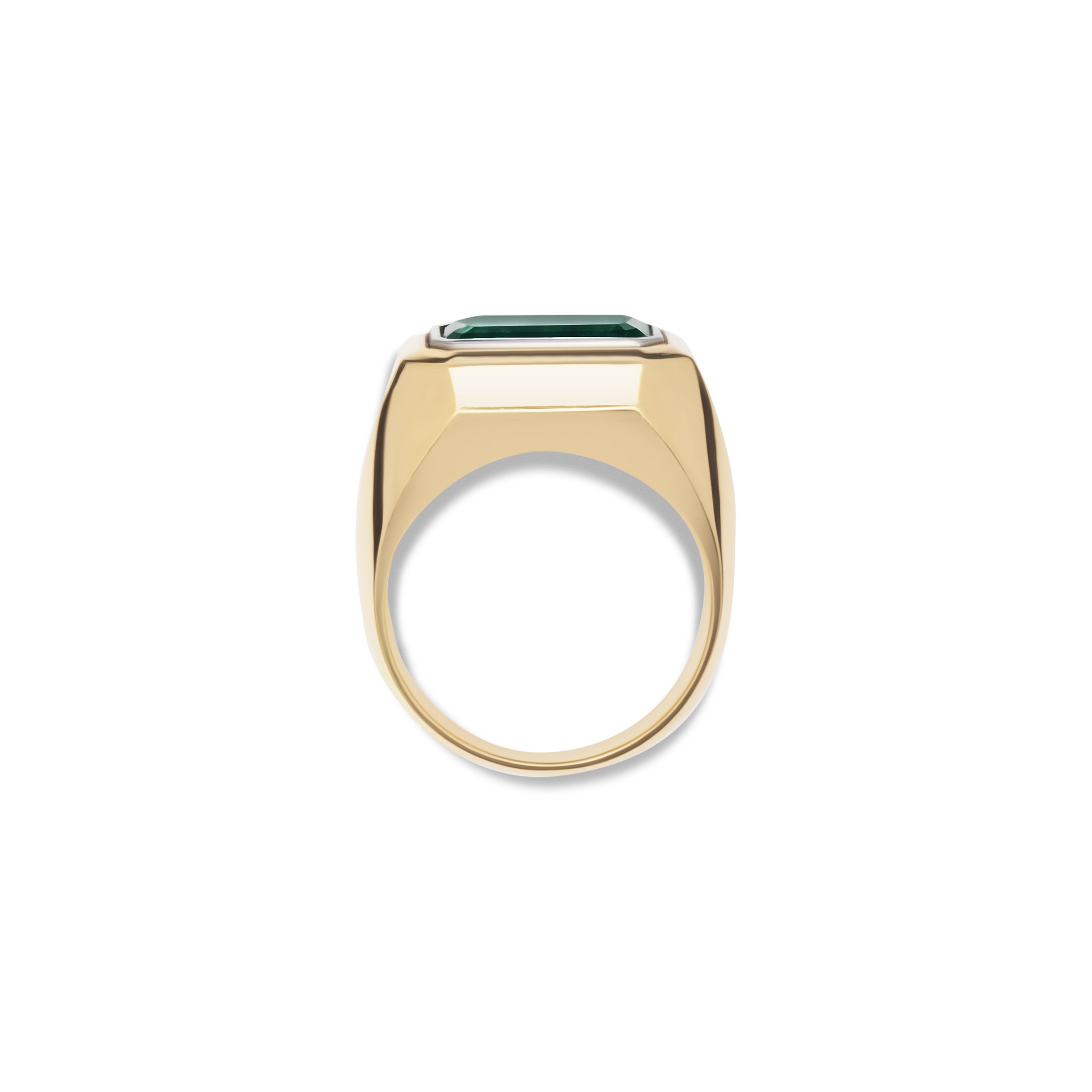 Solitaire Rectangle Ring | Small Scale | Emerald | Mixed Metal